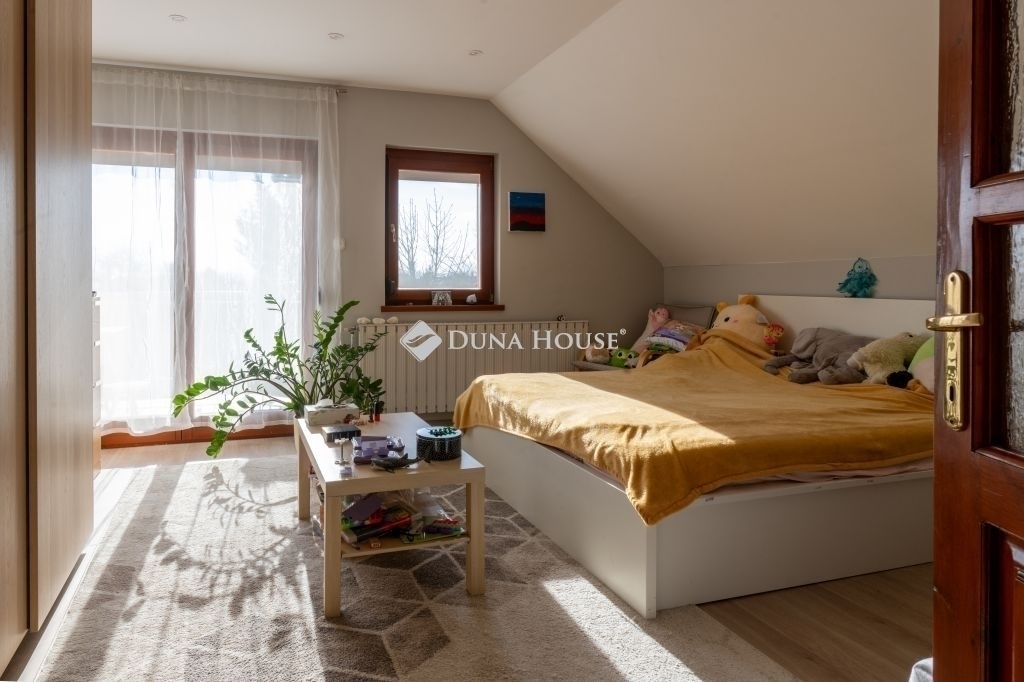 Eladó tágas, sok lehetőséget rejtő lakás Fót Kisalag városrészének elején134 nm-es lakás egy családi ház emeletén, saját, kizárólagos használatú bejárattal és önálló közműórákkal. Az ingatlan különlegessége a hozzá tartozó, kb. 100 nm-es, beépíthető tetőtér, mely ideális lehet például további szobák, dolgozószoba, hobbitér vagy edzőhelyiség kialakítására.A lakás elosztása:amerikai konyhás nappali3 külön nyíló hálószobafrissen felújított fürdőszobák3 külön WCerkély panorámás kilátással a Budai-hegyekreTovábbi jellemzők:saját kert (~100 nm)három garázs, az egyik szerelőaknával, elektromos kapuvalúj gázkazán, új villany- és vízvezetékekmodern új konyhai gépek: új főzőlap, sütő, mosogatógép (10 év garancia)három darab új klímaberendezés (garanciális)elektromos kapu és garázsajtóelektromos autó töltő csatlakozósaját fúrt kút – locsoláshoz vagy akár háztartási célokra is ideálisAz ingatlan kiváló választás többgyermekes családok számára, de akár két generáció együttélésére is alkalmas lehet, tekintettel a külön kialakítható élettérre a tetőtérben.További információért vagy időpont-egyeztetésért várom hívását! Hibás hirdetés bejelentése