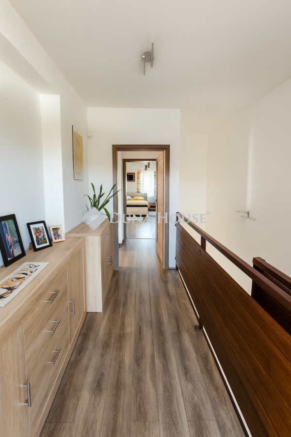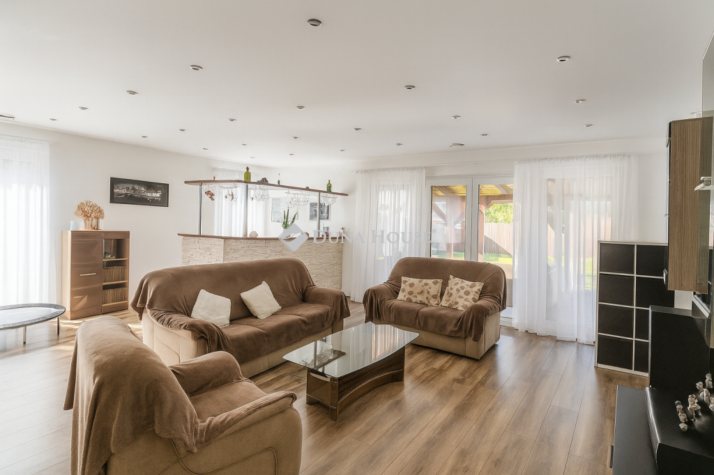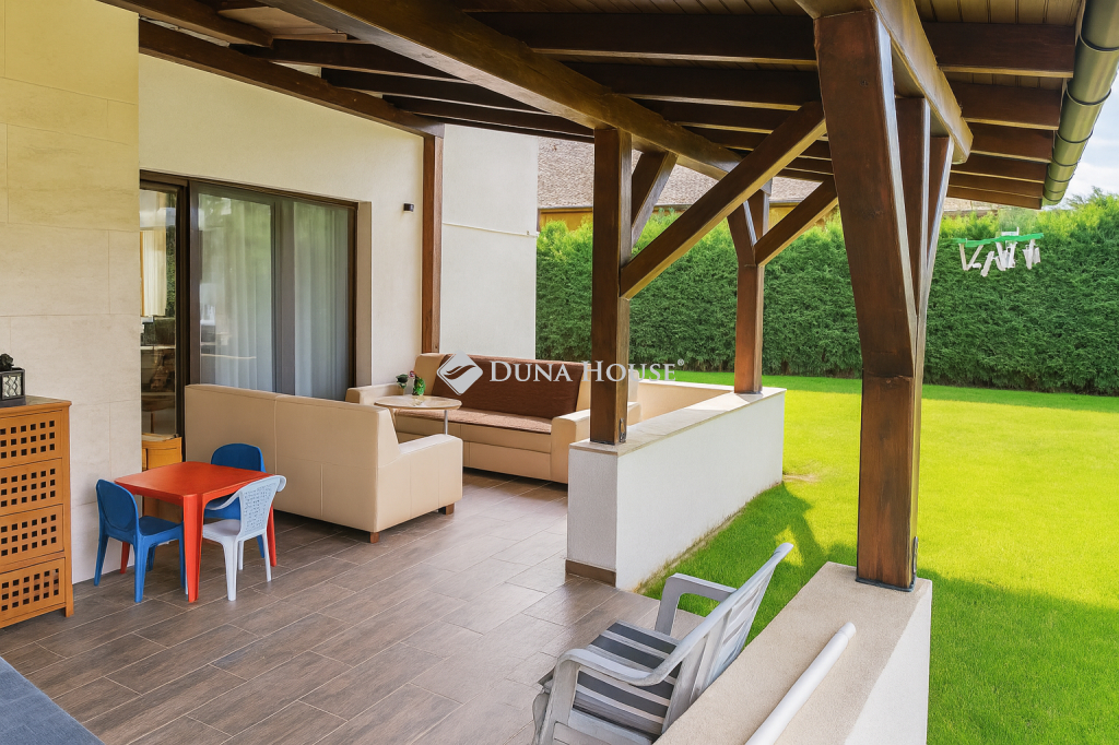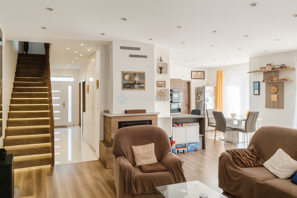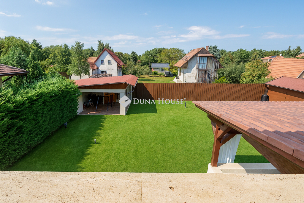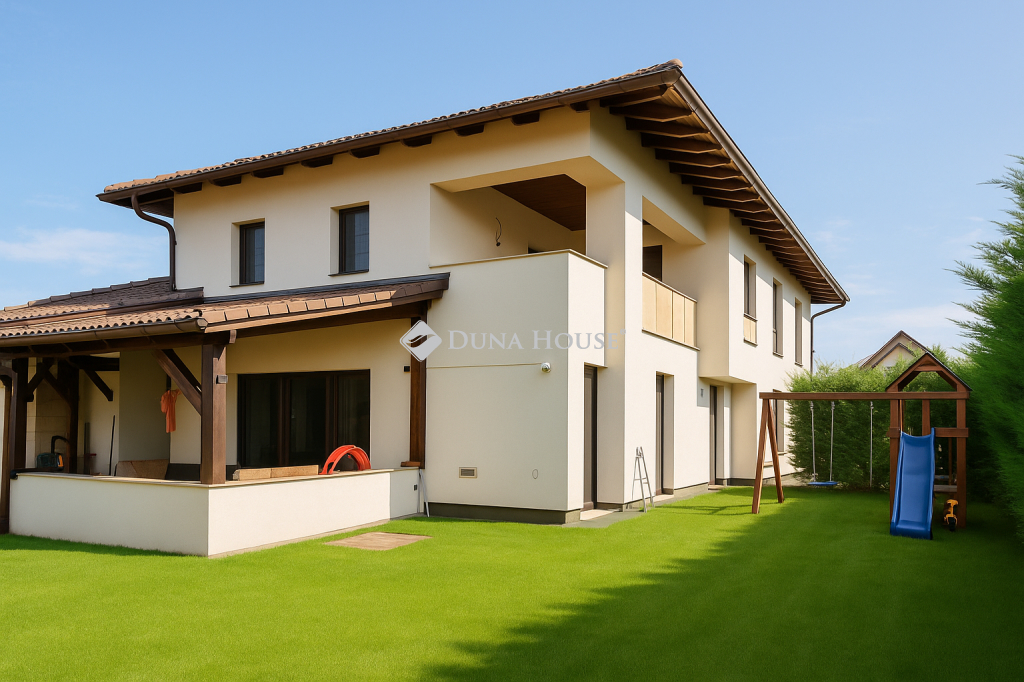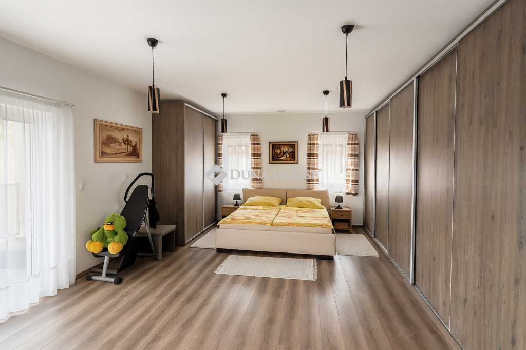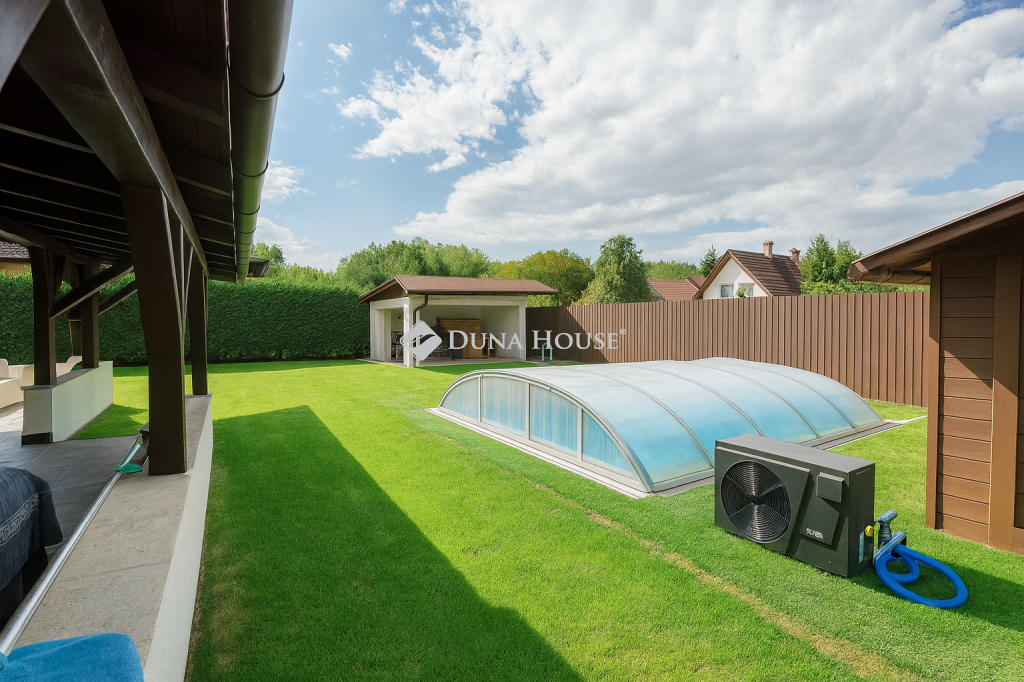 Exkluzív téglaépítésű családi otthon FótonEzt az egyedi, 2022-ben épült, téglaépítésű, kertkapcsolatos családi otthont, azoknak ajánljuk, akik a kiemelkedő minőséget és a természet közelségét keresik. Budapest szívéhez közel, mégis távol a város zajától, Fóton található ez a különleges, napfényes 260 m2-es családi ház, ami egy több, mint 760 m2-es telken áll 262 millió forintért lehet az Öné. Az otthon a modern építészeti megoldásokat és a kényelmet ötvözi, és rendelkezik a legújabb technológiákkal, így az épületben hőszivattyús fűtési rendszer gondoskodik a kellemes hőmérsékletről minden évszakban. Az ingatlan kialakítása biztosítja, hogy minden helyiség könnyen és kényelmesen megközelíthető és használható legyen.A házat jó megközelíthetőség jellemzi, mind Fóton belül, mind a Budapest közelségének tekintetében. Így az itt élő a városi élet számos előnyét is élvezheti, miközben kertvárosi környezetben él.Földszinten található helyiségek:Előszoba - 12 m2Nappali 43 m2Szoba 18 m2Szoba 22 m2Konyha + étkező - 15 m2Kamra 3 m2Tároló - 3 m2Fürdőszoba, WC-vel 6 m2Gardróbszoba - 4 m2Mosókonyha (gépészet) - 4 m2 A házhoz kapcsolódik még egy hatalmas fedett terasz, ahová még esős időben is kiülhetünk, gyönyörű, gyepesített kert, medence, fedett sütögető sarok, nagy kerti tároló ház, valamint egy kétbeállásos garázs is.Emeleten található helyiségek: Közlekedő - 9 m2 Hálószoba - 27 m2 Szoba 18 m2 Fürdőszoba - 15 m2 Zuhanyzó - 4 m2 Gardróbszoba - 4 m2 A hálószobához egy 14 m2 es terasz kapcsolódik panoráma kilátással. A ház elhelyezkedése ideális, csendes és barátságos környezetben található. Az úszómedencés kert, valamint az emeleti szint teraszáról nyíló kilátás lehetőséget nyújt a pihentető kikapcsolódásra és a természetközeli élet élvezetére. A ház praktikus kialakítása ideális otthoni iroda kialakítására, így az otthoni munkavégzés számára is ideális.