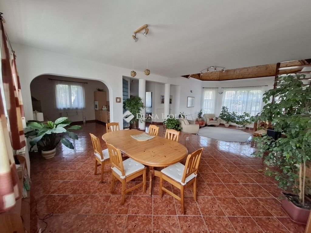 Eladó családiház FótKülönleges stílusú, rendezett, családi házat kínálok eladásra Fót egyik csendes utcájában, nyugodt környezetben. A családiház 2000-ben épült, folyamatosan karban volt tartva, 2012-ben felújításokon esett át. A ház 10 cm-es szigetelést is kapott. Az ingatlan méretéből adódóan akár két generáció számára is tökéletes választás lehet. A házat tágas, világos, jól elrendezett terek jellemzik.Az Élettéről: (227m2-ebben benne van a nagyméretű garázs) a földszinten található: előszoba, 2 szoba, vendég wc, fürdőszoba és egy hatalmas amerikai konyhás nappali(76m2). Az ingatlanban garázs is megépítésre került, ami közvetlen bejárattal rendelkezik a földszinti részhez. A garázs egy autó tárololására alkalmas, különlegessége, hogy egy álló galéria is helyet kapott benne. Az emeletre érve: fürdőszoba, 2 szoba, gardrób, közlekedő és egy nagyobb méretű térrel rendelkező tároló(jelenleg így funkcionál) található. Ebben a helységben több lehetőség is kialakítható - ez már az új Tulajdonos elképzelése, miként fogja alkalmazni ezt a hasznos teret. A ház kiváló fekvésének köszönhetően napfényes, világos terek jellemzik. Az ingatlanban több klíma egység is megtalálható, az otthon melegéről pedig gázkazán gondoskodik. Az ingatlanhoz tartozik egy fedett és egy nyitott terasz, ahol kényelmesen élvezhetjük a csendes környezetet egy fárasztó nap után. A telek mérete: 992m2, mely parkosított méretéből adódóan kiválóan alkalmas családi és baráti összejövetelekre egyaránt. A telken található egy ásott, gyűrűs kút, szivattyúval, mely szintén kényelmi funckiót ad a mindennapi Élethez.A szomszédság kedves és csendes, mely abszolút elengedhetetlen egy nyugodt Életvitelhez.Az ingatlan elhelyezkedése is nagyon jó, iskola, óvoda, boltok, orvosi rendelő pár perc autóval és közepes távolságú sétával elérhetőek(kb. 750m)Mindenképpen ajánlom a ház megtekintését, a jól átgondolt terek és rendezettsége miatt biztosan nem fog csalódni, a képek tükrözik a valóságot!!!Per és tehermentes, szinte azonnal költözhető 1/1 korrekt Tulajdonossal!Bármilyen felmerülő kérdés esetén keressen bizalommal!