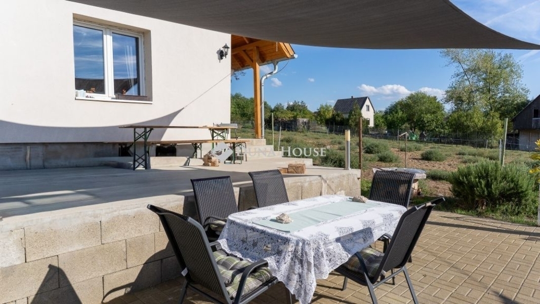 Vigyázat bele lehet szeretni! Én szóltam előreHogy pontosan mibe?Fóton, az Öreghegy lábánál, 1405 m2-es telken lévő 62 négyzetméteres, téglaszerkezetű családi otthonba melybenaz élettér 2 szinten valósul meg, fele-fele arányban.Miért?Mert jelenleg is életvitelszerűen lakják és még számtalan kiaknázható lehetőséget kínál maga az épület és nem utolsó sorban a terület.Meghatározott kereteken belül akár bővíthető egy szobával. A telek területén pedig a gazdálkodás vagy állattartás is megoldható, anélkül, hogy sérülne az élettér.Vezetékes víz és fúrt kút is rendelkezésre áll, a melegről egy igen termetes méretű cserépkályha gondoskodik, kiegészítőként elektromos fűtőpanel és klíma is használható egyedi igények szerint, a villamos hálózat elbírja, mert új vezetékek vannak, 3 X 16A áramerősséggel.Az épületen 10 cm-es hungarocell szigetelés van, nyílászárói 3 rétegű műanyagok ablakok, bejárati ajtaja fém biztonsági ajtó.A beépített konyhában elektromos sütő és főzőlap.A melegvízről villanybojler gondoskodik.A ház alatt nem teljes terjedelmében egy száraz pince található, 16 m2 területű.Egyik oldalt fa szerkezetű lemezfedésű autóbeálló, akár 2 autó részére.A ház előtt nagyméretű betonozott, térkövezett teraszon élvezhető a táj és a friss levegő, a saját kertünk nyújtotta harmónia.És végül de nem utolsó sorban ahogy szokták mondani, ovi, suli, boltok, autópálya, központ 2 km-en belül, aszfalt út 500 méteren belül.Hogyan lehet az Öné?Elsősorban készpénzfizetéssel, mert az ingatlanunk besorolása: művelés alól kivett zártkerti terület és gazdasági épület, ezért nem hitelezhető.Minden egyéb információért kérem keressen bizalommal!