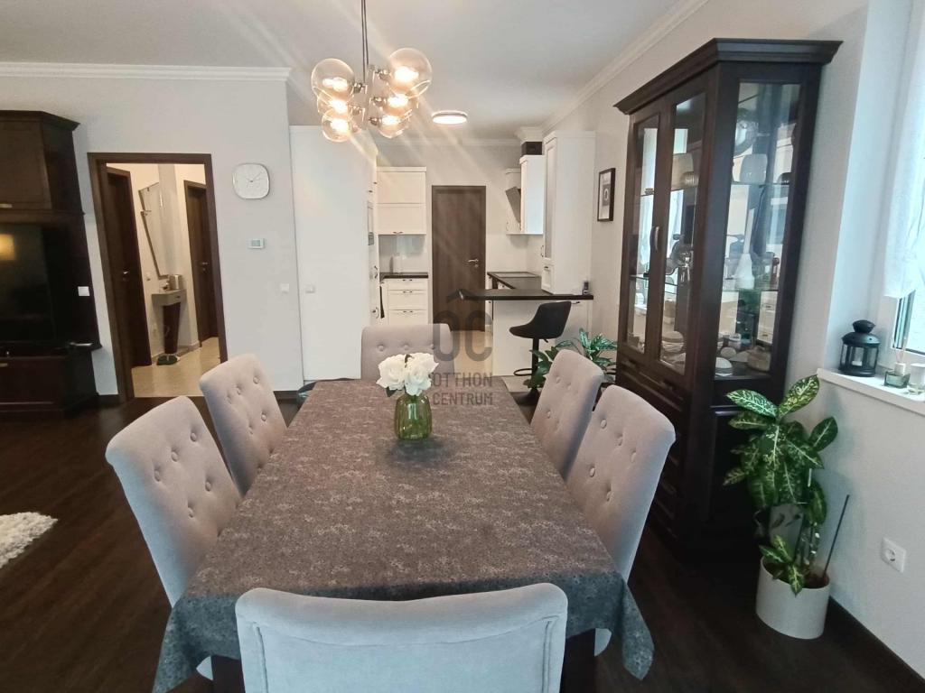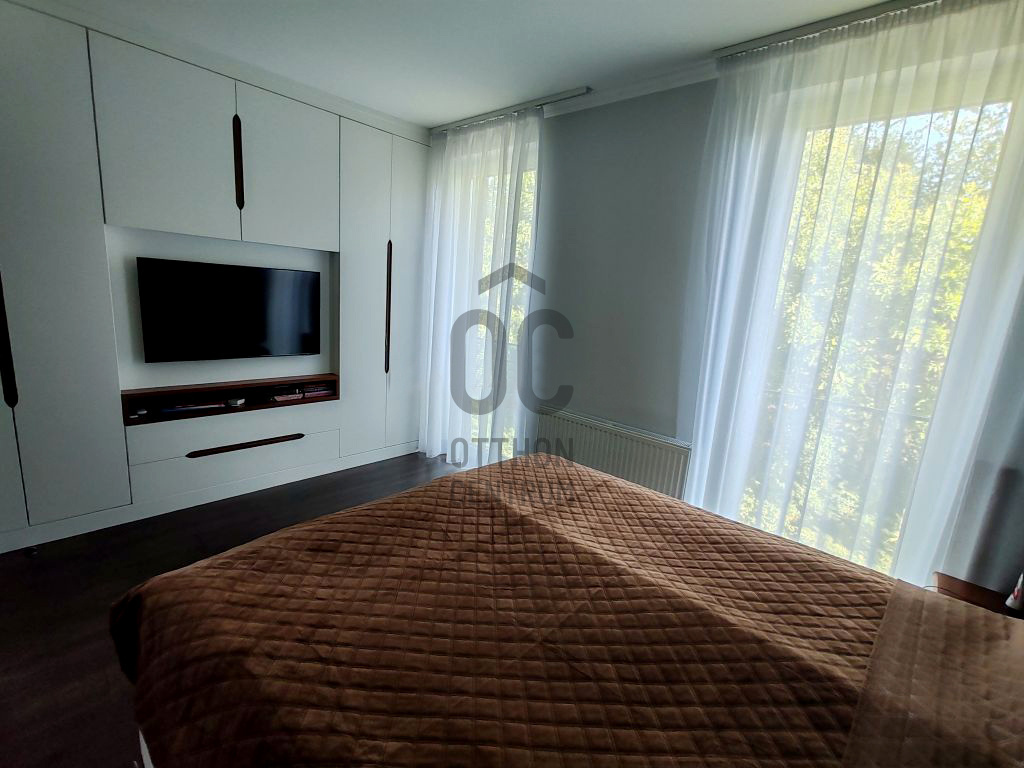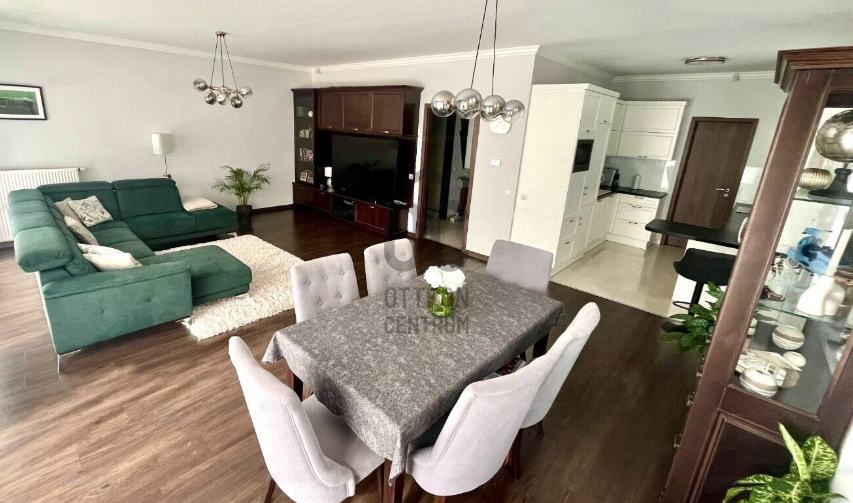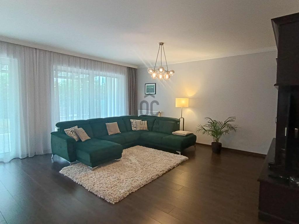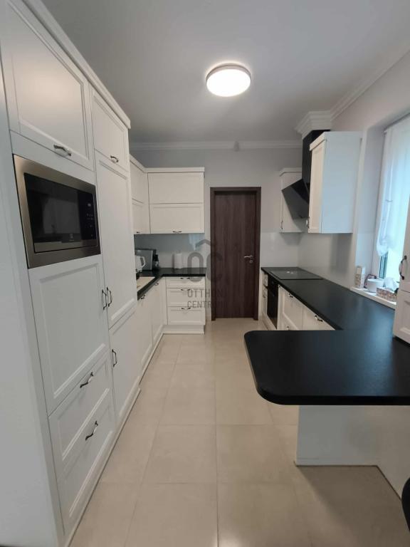 Az otthon teljes bútorzattal együtt eladó, beleértve: beépített szekrények, nagyméretű, modern kanapé, függönyök és lámpatestek, gépesített konyhabútor, Fűtést energiatakarékos kondenzációs gázkazán biztosítja padlófűtéssel és szobánként szabályozható termosztátokkal, a ház hűtése hűtő-fűtő klíma, emeleten mennyezetbe épített klímaberendezések vannak a szobákban. 3 rétegű, nyílászárók szúnyoghálóval és motoros, alumínium redőnyökkel . Zöldterületeket, játszóteret és parkot is tartalmaz. 24 órás portaszolgálattal és sorompós beléptető rendszerrel rendelkezik .