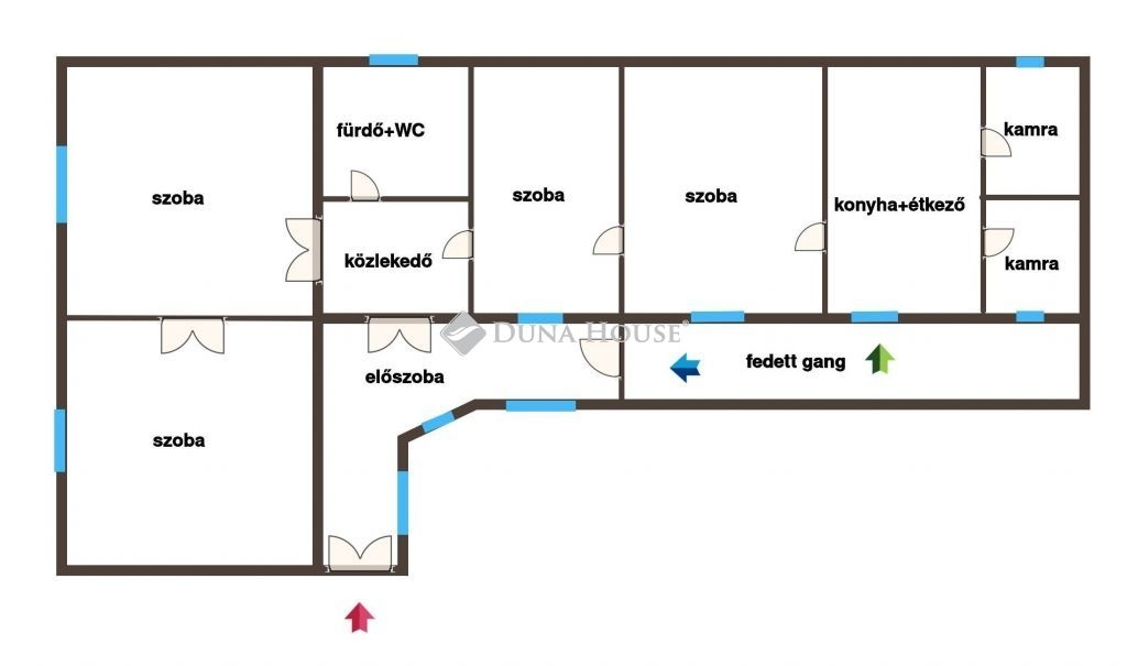 - 4 szoba, konyha+étkező, 2 kamra, fürdő+WC, közlekedő