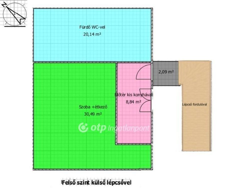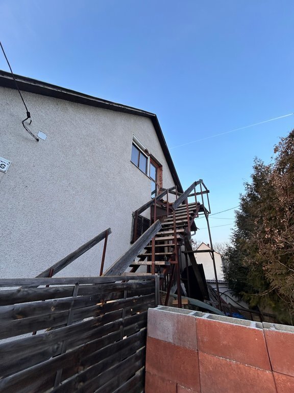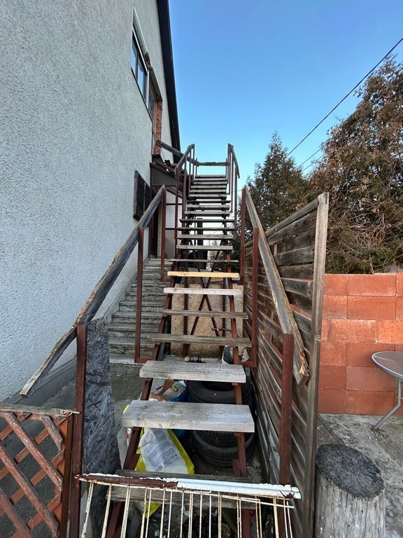 Göd-felső csendes részén, zöldövezetben eladó, egy 1988-ben épített ikerház fél felső szintje, 250 nm-es telekkel. A ház alapterülete: 56 nm. A házhoz tartozik egy külső feljáró, ezen keresztül közelíthető meg a felső szint, amely áll egy előtérből, kis konyhából, egy szobából, és egy fürdőből wc-vel egyben. Falazata tégla, a tető pala fedésű. A fűtésről egy gázcirkó gondoskodik, a hőleadást radiátorok biztosítják. Göd-Felső vasútállomás gyalog 8-10 perc, buszmegálló 200m. M2 autóút 5 perc, Tesco 5 perc. Az üresen álló 1/2 rész nem eladó Külön is eladó, külső feljárat, külön álló. Hibás hirdetés bejelentése
