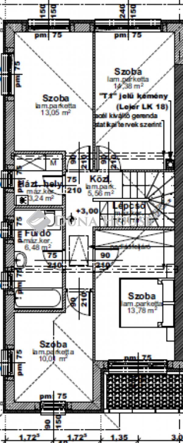 Műszaki tartalom:- okostégla falazat, modern hőszigetelés,- 3 rétegű nyílászárók, mindenhol szúnyogháló és redőny,- kondenzációs gázkazán (padlófűtés a földszinten, radiátorok az emeleten),- klímák minden helyiségben,- 3 fázis biztosított, - térkövezett autóbeálló és járdák.