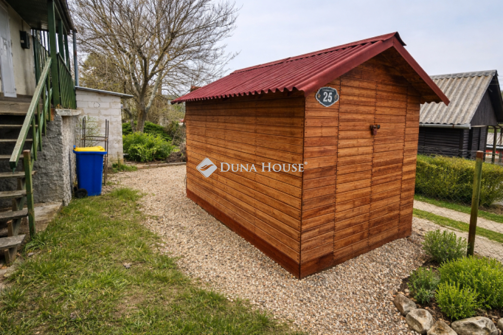 A telken található egy különálló, kb. 7 m²-es faház, amely kiválóan alkalmas tárolásra, műhelynek vagy akár horgászfelszerelések elhelyezésére.