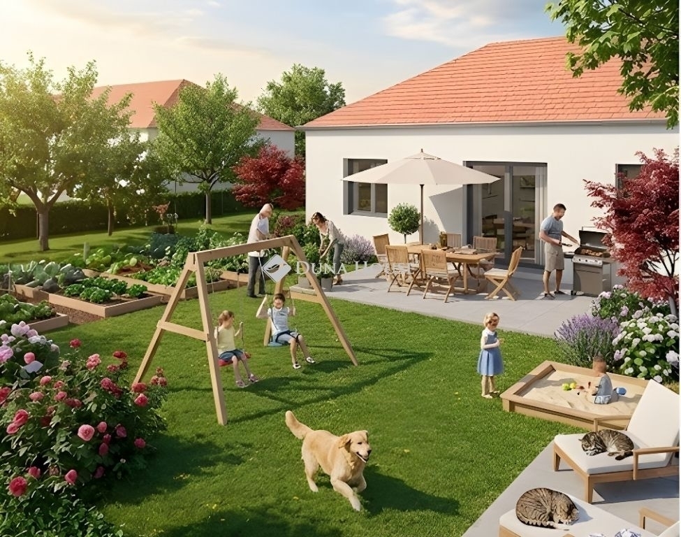 Eladásra kínálunk egy 2026-ban épülő, földszintes, 4 szoba + amerikai-konyhás nappalival rendelkező, napfényes, önálló családi házat, amely 2027 tavaszán kerül átadásra, 1000 nm-es telekkel!