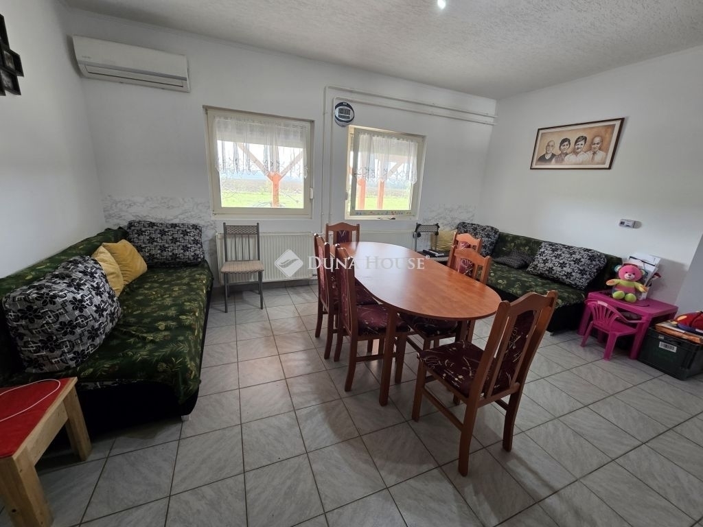 Eladó Görcsöny településen egy egy szintes, 2004-ben épült szép állapotú családi ház.Az ingatlan 4 lakószobával rendelkezik, alapterülete 100 nm, tetőszerkezete Bramac beton cseréppel fedve.A ház egy része tégla építésű, másik része könnyűszerkezetes, a falszerkezet 15 cm kőzetgyapot szigeteléssel, kívülről 10 cm külső szigeteléssel.Az ingatlan nyílászárói műanyagok, fűtése megoldott gázkazánnal, klímával (3,5 kW) , vegyes tüzelésű kazánnal, illetve elektromos kazánnal is.Az épület tetőszerkezetén elhelyezésre került 6,5 kW napelem is, mely az épület teljes villamosenergia költségeit fedezi.Elektromos autó öltésére is megfelelő.Ipari áram is elérhető az ingatlanban.Az ingatlan különlegessége, hogy a lakóépület folytatásaként, egy kislétszámú, HACCP előírásainak maximálisan megfeleltetett lakásétterem is tartozék!A falu ezen részén a csatornahálózat nem elérhető! Az épülethez tartozó területen 42 db gyümölcsfa, épített kemence és fedett terasz is található.Az épületek folytatásaként találunk egy 6x5 méteres fém szerkezetű tároló, ami raktárként, műhelyként használható.Ha további kérdése van, kérem hívjon bizalommal!