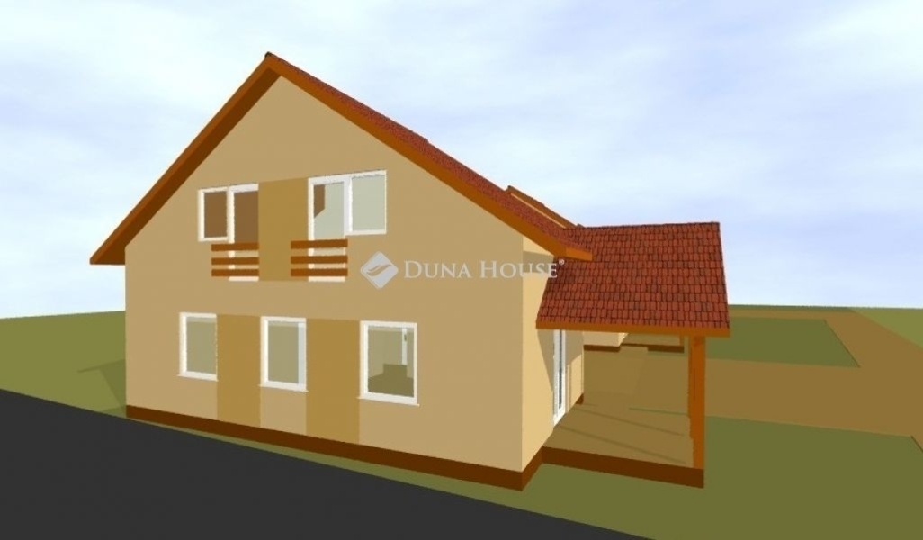 Emelet: közlekedő, fürdőszoba, három hálószoba, melyek közül az egyikből egy 9 m²-es terasz nyílik.