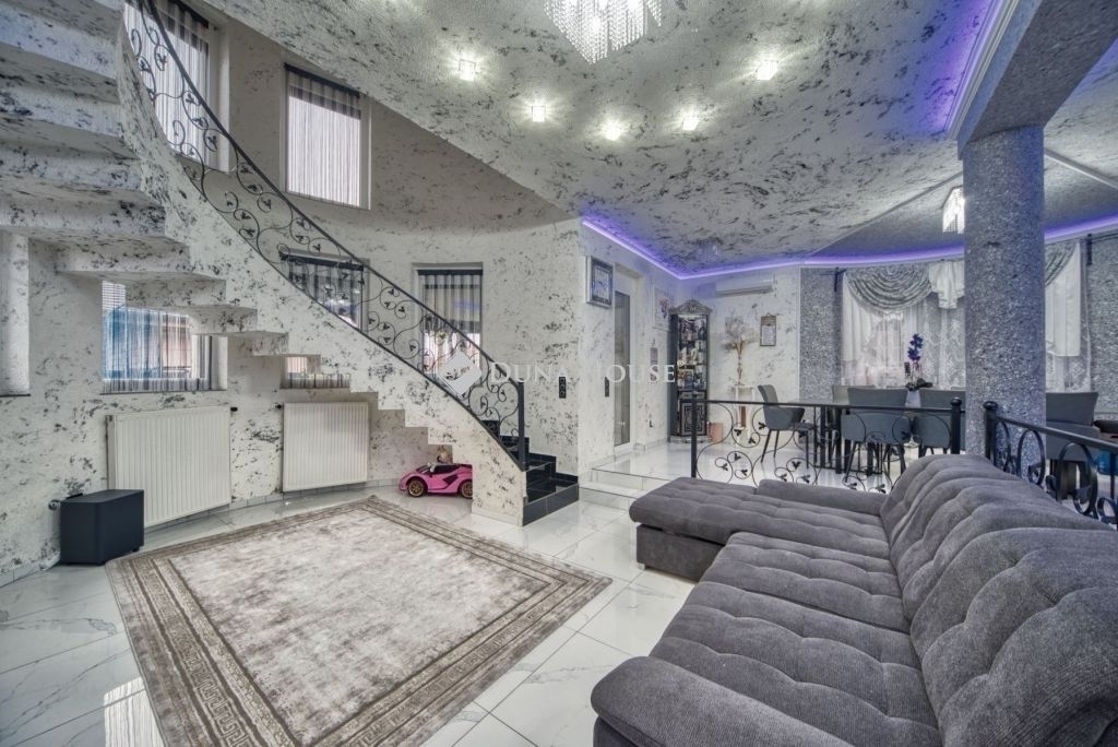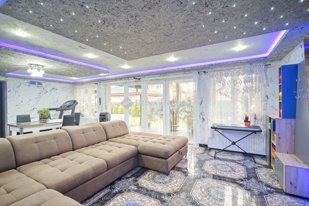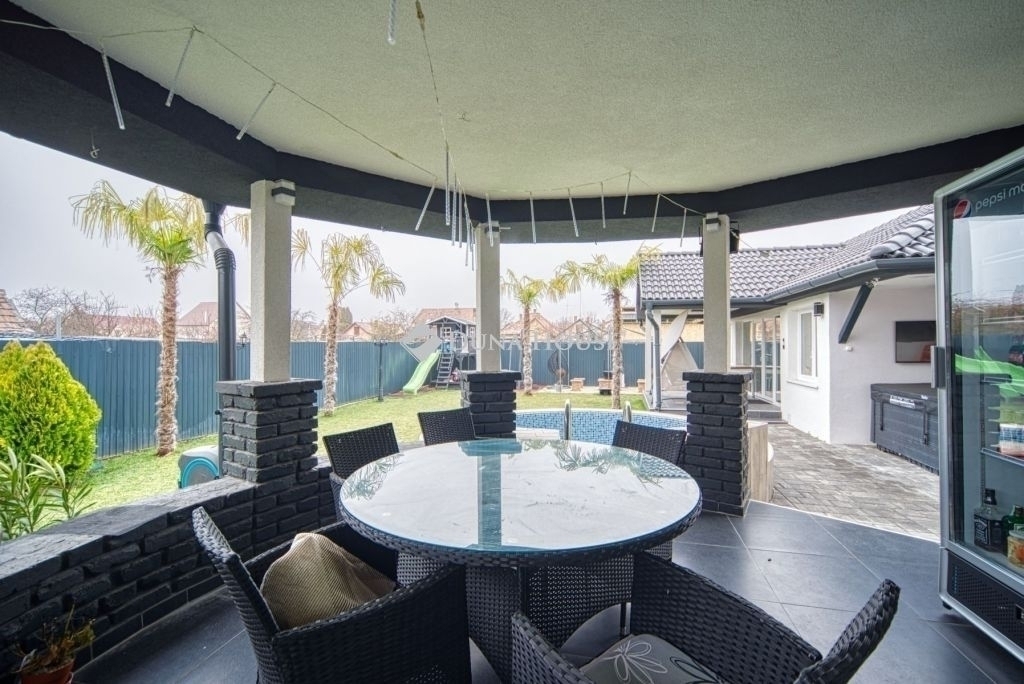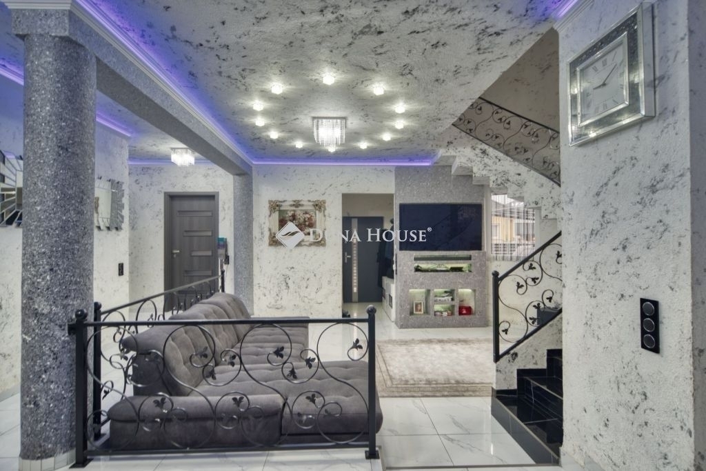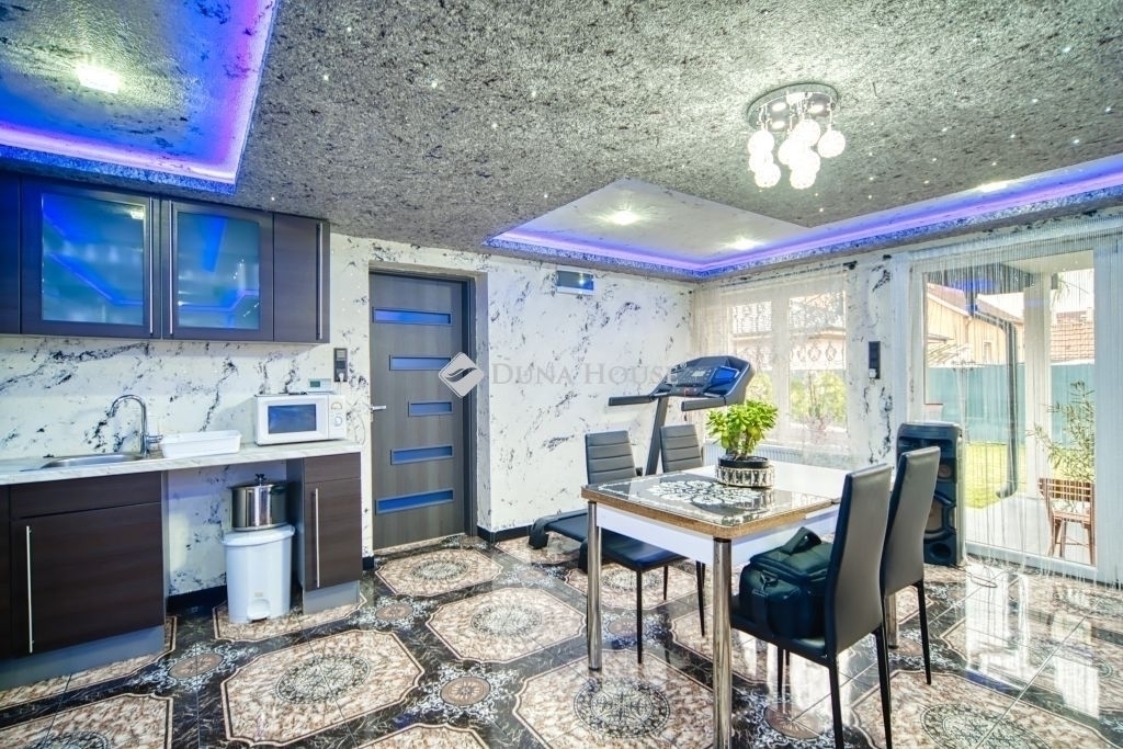 Igényes, minőségi ház Gyál központi részén.FANTASZTIKUS ELRENDEZÉS 2 LAKRÉSZBEN!Gyálon van egy csendes utca, kedves szomszédokkal.Itt mindenki ismer mindenkit. A köszönés még nem ment ki a divatból, a segítőkészség erény.Ebben az utcában a tulajdonosok megálmodtak egy otthont, ahol mindenkinek van egy kellemesen tágas szobája, ahol elvonulhat, pihenhet.De van két olyan nappali, ahol az egész család együtt lehet. Itt kanyarodnék a Generációk együtt jelzőre.Olyan kétgenerációs otthont szeretnék a figyelmébe ajánlani, ami nem csak két szintes, hanem valóban megtalálható benne minden, ami kétgenerációs ingatlanná teszi.Budapest határán, Gyálon, kedves környezetben eladó PRÉMIUM ÖNÁLLÓ CSALÁDI HÁZ.A családi otthon 2003-ban épült, mostani formáját 2024 év végére nyerte el.A 2023-ban minimál stílusban átalakított, két lakrésszel rendelkező családi ház csendes mellékutcában fekszik, Gyál Városközponthoz közel.2024-ben tetőtől, talpig megtörtént a felújítás, csak a falak maradtak meg, minden műszaki és esztétikai felújítás megvalósult.Ezen a szuper adottságú, 563 nm-es tágas telken több állásos autóbeálló van kialakítva, sőt a ház előtt is van parkolási lehetőség több autó számára.A kert igényes, gondozott, a gyermekeknek játszótér került kialakításra, minden kényelmesen elfér rajta és még mindig elegendő élettér marad, medencének, jakkuzinak, kerti sütögetőnek.A zöldterületen kívüli rész 240 nm térkővel burkolt.Az ingatlan hasznos alapterülete: 194 nm, a földszinten amerikai konyha+nappali+étkező, hálószoba, előszoba, fürdő, wc, kamra és kazánhelyiség áll rendelkezésre.Az étkező fedett terasz kapcsolatos, mely tavasztól őszig minden családi összejövetel színtere lehet.Az emelti szintre kényelmes lépcsőn jutunk fel a 11 nm-es előtér még közösségi térnek is kiválóan alkalmas. Két db 17,8 nm szoba került kialakításra, viszont az egyik szoba két gyerekszobává lett megosztva, mely vissza állítható, sőt még fürdő és wc várja leendő lakóit.A szobák erkély kapcsolatosak a belső lépcsőtér új átalakításon esett át.Nézzük a fontosabb műszaki jellemzőket és extrákat: B38-as tégla falazat, 50-es fal van, a homlokzati szigetelés 15 cm, az aljzatban 5 cm szigetelés került, betonfödémes a ház, műanyag nyílászárók, elektromos redőnnyel ellátva, szúnyoghálóval, 4 db klíma került beépítésre, új villanyvezeték és új vízvezeték rendszer került kiépítése, fűtés: a földszinten padlófűtés és radiátoros fűtés van, a fűtést hőszivattyú biztosítja, a fűtésrendszer úgy lett kialakítva, hogy minden szint külön körön fut, riasztórendszer elektromos kapu, kaputelefon, kamerarendszer, 3 fázis van, a tető új, betoncseréppel borított, a locsolás fúrt kútról történik, a medence fűtött, hőszivattyús, külön gépházzal rendelkezik, a fürdőszobák felújítottak, a beltéri ajtók újszerűek, energiatakarékos lámpák mindenhol, a konyha vadonatúj.A két épületrészt egy tároló köti össze a kisebb lakrészeb 60 nm-en gazdálkodunk, melyben egy amerikai konyhás nappali+étkező kapott, helyet, fürdőszoba és wc is kialakításra került.Fedett teraszkapcsolatos a 48 nm-es garzon lakás is.Mindenhol minőségi burkolatok, szaniterek és bútorok kerültek beépítésre, amelyek a gépesített konyhával és a 4 db klímával együtt a vételár részét képezik.Külső tároló is kiépítésre került a kerti szerszámok részére, sőt wc és kézmosó is rendelkezésre áll.Automata öntözőrendszer gondoskodik a szép környezetről.A füvet nem kell gondozni: telepített elektromos robot fűnyíró is kiépítésre került.Kuriózuma a háznak, hogy kb. 1 km-es körzeten belül megtalálható élelmiszer bolt, iskola, óvoda, uszoda, buszmegálló, gyógyszertár, ezért kiemelten ajánlom e leendő otthont kisgyermekes családok részére.Kiváló közlekedés Budapest közelsége és a rendkívül jól szervezett és sűrűn közlekedő BKK buszjáratoknak köszönhetően (55,84,94,294,89) a fővárosba jutás gyors és egyszerű.Gyál városa igen gyorsan és dinamikusan fejlődő település. Ha egy valóban csendes helyen keres, valóban jó alapokkal rendelkező házat, ahova szeretteivel szívesen beköltözne, ne keressen tovább, megtalálta!Ha csak egy pici hiányzik a vételárhoz, vagy esetleg a felére lenne szükség - Hitelcentrumunk teljes körű és díjmentes hitelügyintézéssel áll az Önök szolgálatára.Összességében egy jó lokációval rendelkező, valóban két generáció együttélését biztosítani tudó ingatlan lehet az Öné közel Budapesthez.Hívjon és nézzük meg együtt ezt az igazán egyedi otthont!