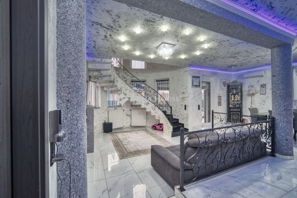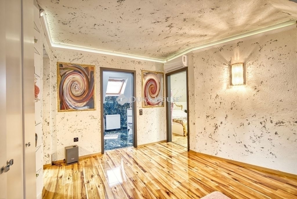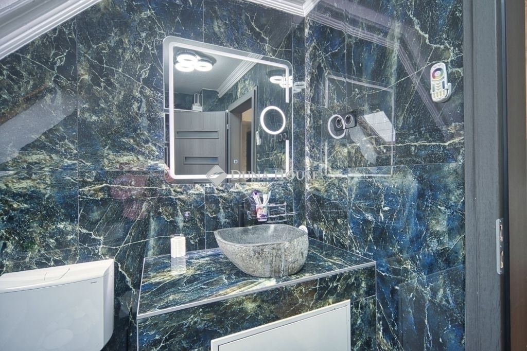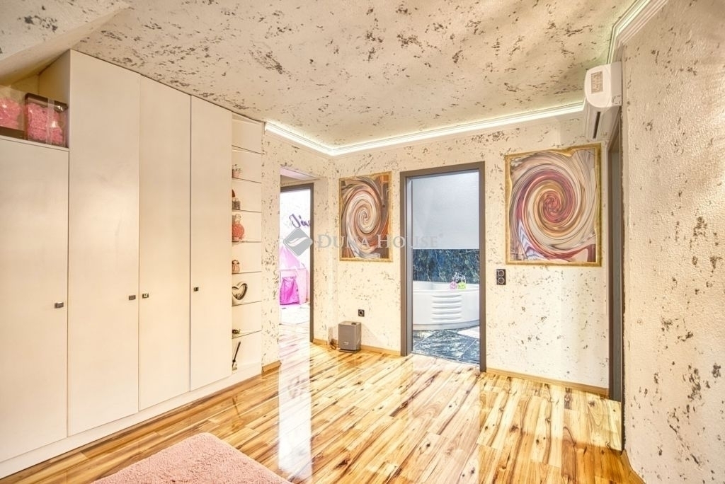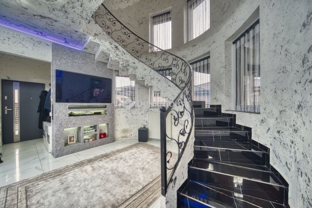 Igényes, minőségi ház Gyál központi részén.FANTASZTIKUS ELRENDEZÉS 2 LAKRÉSZBEN!Gyálon van egy csendes utca, kedves szomszédokkal.Itt mindenki ismer mindenkit. A köszönés még nem ment ki a divatból, a segítőkészség erény.Ebben az utcában a tulajdonosok megálmodtak egy otthont, ahol mindenkinek van egy kellemesen tágas szobája, ahol elvonulhat, pihenhet.De van két olyan nappali, ahol az egész család együtt lehet. Itt kanyarodnék a Generációk együtt jelzőre.Olyan kétgenerációs otthont szeretnék a figyelmébe ajánlani, ami nem csak két szintes, hanem valóban megtalálható benne minden, ami kétgenerációs ingatlanná teszi.Budapest határán, Gyálon, kedves környezetben eladó PRÉMIUM ÖNÁLLÓ CSALÁDI HÁZ.A családi otthon 2003-ban épült, mostani formáját 2024 év végére nyerte el.A 2023-ban minimál stílusban átalakított, két lakrésszel rendelkező családi ház csendes mellékutcában fekszik, Gyál Városközponthoz közel.2024-ben tetőtől, talpig megtörtént a felújítás, csak a falak maradtak meg, minden műszaki és esztétikai felújítás megvalósult.Ezen a szuper adottságú, 563 nm-es tágas telken több állásos autóbeálló van kialakítva, sőt a ház előtt is van parkolási lehetőség több autó számára.A kert igényes, gondozott, a gyermekeknek játszótér került kialakításra, minden kényelmesen elfér rajta és még mindig elegendő élettér marad, medencének, jakkuzinak, kerti sütögetőnek.A zöldterületen kívüli rész 240 nm térkővel burkolt.Az ingatlan hasznos alapterülete: 194 nm, a földszinten amerikai konyha+nappali+étkező, hálószoba, előszoba, fürdő, wc, kamra és kazánhelyiség áll rendelkezésre.Az étkező fedett terasz kapcsolatos, mely tavasztól őszig minden családi összejövetel színtere lehet.Az emelti szintre kényelmes lépcsőn jutunk fel a 11 nm-es előtér még közösségi térnek is kiválóan alkalmas. Két db 17,8 nm szoba került kialakításra, viszont az egyik szoba két gyerekszobává lett megosztva, mely vissza állítható, sőt még fürdő és wc várja leendő lakóit.A szobák erkély kapcsolatosak a belső lépcsőtér új átalakításon esett át.Nézzük a fontosabb műszaki jellemzőket és extrákat: B38-as tégla falazat, 50-es fal van, a homlokzati szigetelés 15 cm, az aljzatban 5 cm szigetelés került, betonfödémes a ház, műanyag nyílászárók, elektromos redőnnyel ellátva, szúnyoghálóval, 4 db klíma került beépítésre, új villanyvezeték és új vízvezeték rendszer került kiépítése, fűtés: a földszinten padlófűtés és radiátoros fűtés van, a fűtést hőszivattyú biztosítja, a fűtésrendszer úgy lett kialakítva, hogy minden szint külön körön fut, riasztórendszer elektromos kapu, kaputelefon, kamerarendszer, 3 fázis van, a tető új, betoncseréppel borított, a locsolás fúrt kútról történik, a medence fűtött, hőszivattyús, külön gépházzal rendelkezik, a fürdőszobák felújítottak, a beltéri ajtók újszerűek, energiatakarékos lámpák mindenhol, a konyha vadonatúj.A két épületrészt egy tároló köti össze a kisebb lakrészeb 60 nm-en gazdálkodunk, melyben egy amerikai konyhás nappali+étkező kapott, helyet, fürdőszoba és wc is kialakításra került.Fedett teraszkapcsolatos a 48 nm-es garzon lakás is.Mindenhol minőségi burkolatok, szaniterek és bútorok kerültek beépítésre, amelyek a gépesített konyhával és a 4 db klímával együtt a vételár részét képezik.Külső tároló is kiépítésre került a kerti szerszámok részére, sőt wc és kézmosó is rendelkezésre áll.Automata öntözőrendszer gondoskodik a szép környezetről.A füvet nem kell gondozni: telepített elektromos robot fűnyíró is kiépítésre került.Kuriózuma a háznak, hogy kb. 1 km-es körzeten belül megtalálható élelmiszer bolt, iskola, óvoda, uszoda, buszmegálló, gyógyszertár, ezért kiemelten ajánlom e leendő otthont kisgyermekes családok részére.Kiváló közlekedés Budapest közelsége és a rendkívül jól szervezett és sűrűn közlekedő BKK buszjáratoknak köszönhetően (55,84,94,294,89) a fővárosba jutás gyors és egyszerű.Gyál városa igen gyorsan és dinamikusan fejlődő település. Ha egy valóban csendes helyen keres, valóban jó alapokkal rendelkező házat, ahova szeretteivel szívesen beköltözne, ne keressen tovább, megtalálta!Ha csak egy pici hiányzik a vételárhoz, vagy esetleg a felére lenne szükség - Hitelcentrumunk teljes körű és díjmentes hitelügyintézéssel áll az Önök szolgálatára.Összességében egy jó lokációval rendelkező, valóban két generáció együttélését biztosítani tudó ingatlan lehet az Öné közel Budapesthez.Hívjon és nézzük meg együtt ezt az igazán egyedi otthont!
