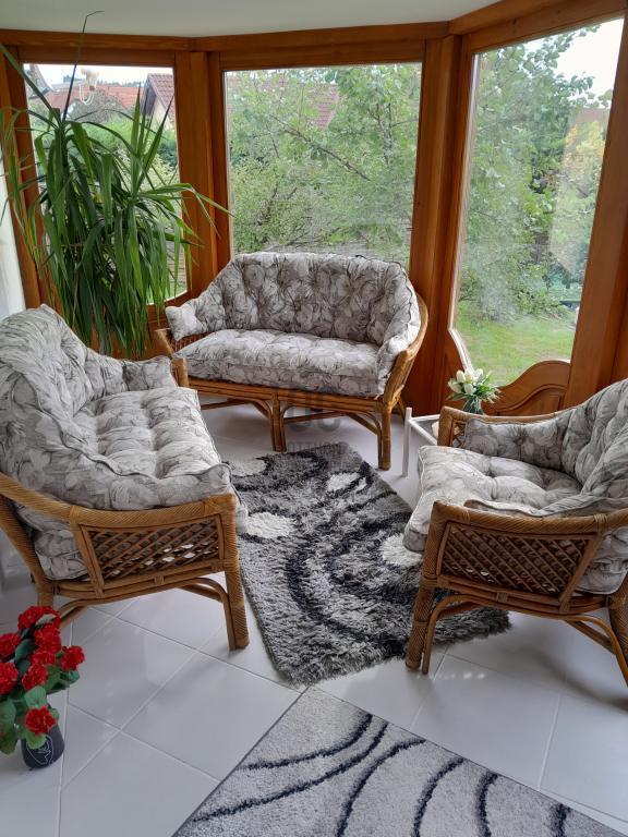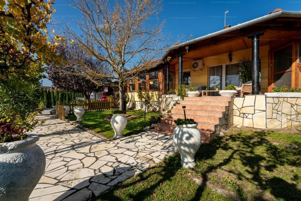 A házhoz két tágas télikert, egy hangulatos fedett terasz, valamint melléképület és raktár is tartozik.