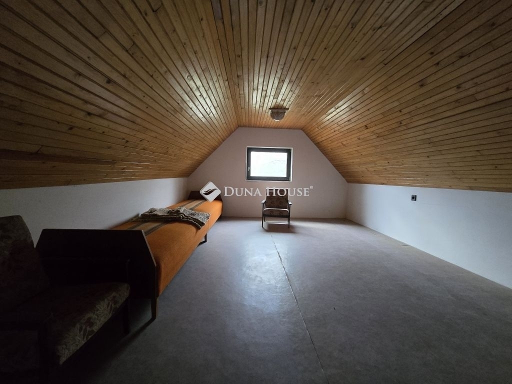 Gyódi Szőlőhegyen eladó egy 50 m²-es, belső kétszintes téglaépítésű kis ház stabil szerkezettel. A földszinten egy nagy konyhaétkező, zuhanyzó és WC, valamint egy előtér kapott helyet, amelyből a pince is megközelíthető. Az emeleten két szoba található.Az ingatlanban villany van, a vízellátás korábban fúrt kútról történt. A kút évek óta nincs használatban, működőképessége nem garantált. Gáz és csatorna nincs a telken, azonban az utcában több állandó lakos él, akik szintén kútvízzel oldják meg a vízellátást, így a rezsi alacsonyan tartható.A terület két, egymás mellett fekvő, külön helyrajzi számú telekből áll, 1 938 m², művelési ágból kivonásra került. Nagy része sík, kb. egyharmada enyhén dombos, gyümölcsfákkal beültetett. A terület és a ház is gondozást, illetve esztétikai felújítást igényel, ugyanakkor a szerkezet jó állapotú, így viszonylag könnyen lakhatóvá tehető.Az ingatlan tehermentes, akár 12 napon belül birtokba vehető. A környék csendes, rendezett, a szomszédság kifejezetten barátságos. Buszmegálló a közelben található, így a közlekedés is kedvező.További kérdéseivel és személyes megtekintésért várom hívását!