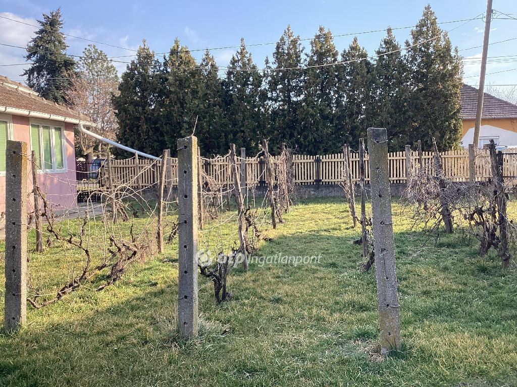 A kertben szőlő sorok, gyümölcsfák várják az új tulajdonost.