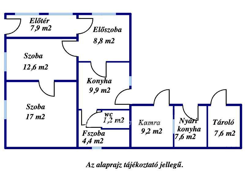 A nyílászárók faszerkezetűek kivéve a két szoba, ahová néhány éve műanyag ablakok kerültek beépítésre.