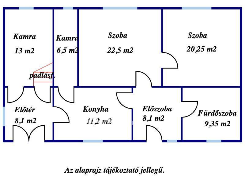 Helyiségei: 2 tágas szoba, konyha, előszoba, fürdőszoba, előtér, 2 kamra . Területe: 99 m2