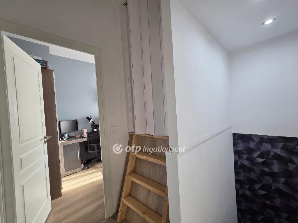 A lakás világos, barátságos, praktikusan tagolt, a tolóajtós lépcsőház pedig biztosítja a nyugodt pihenést.