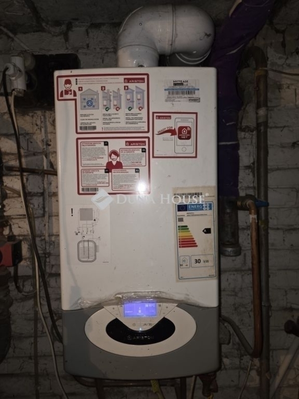 Az épület alatt pince található két tárolóhelyiséggel, itt kapott helyet a gázkazán és a vegyes tüzelésű kazán, amelyek a teljes ház fűtését biztosítják, gazdaságos, rugalmas megoldás.