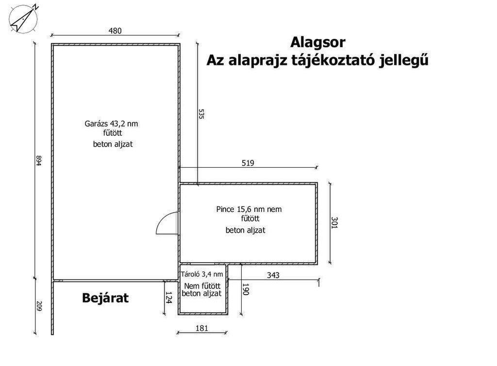 Az alagsorban egy 43 nm-es, fűtött garázs, valamint egy 19 nm-es tárolóhelyiség biztosít kényelmes parkolási és tárolási lehetőséget.