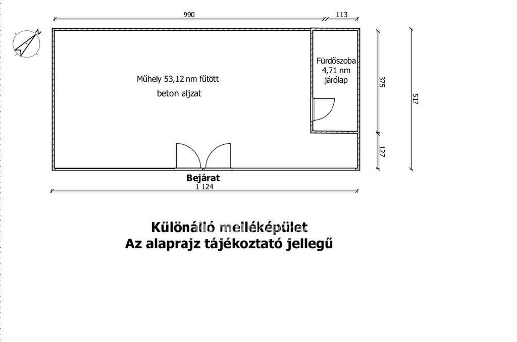 A telken található 58 nm-es, önálló melléképület, mely külön gázfűtéssel rendelkezik és hűtő-fűtő klímával ellátott. Az épületben fürdőszoba WC-vel, 3 fázisú áram, valamint szauna is helyet kapott. Wellness és szórakoztató térként funkcionál. Kialakításának köszönhetően műhelynek is használható. de kiválóan alkalmas vállalkozás, iroda, vagy akár külön lakórész kialakítására is.