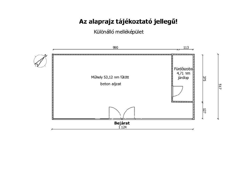 A telken található 58 nm-es, önálló melléképület, mely külön gázfűtéssel rendelkezik és hűtő-fűtő klímával ellátott. Az épületben fürdőszoba WC-vel, 3 fázisú áram, valamint szauna is helyet kapott. Wellness és szórakoztató térként funkcionál. Kialakításának köszönhetően műhelynek is használható. de kiválóan alkalmas vállalkozás, iroda, vagy akár külön lakórész kialakítására is.