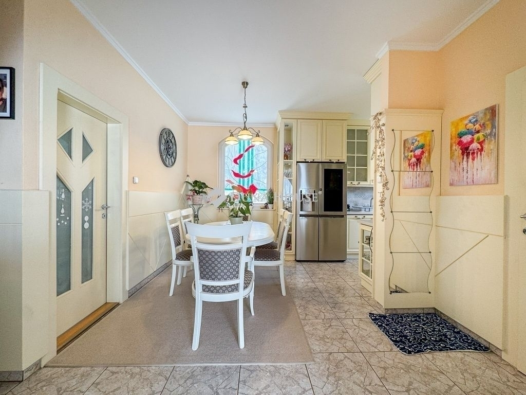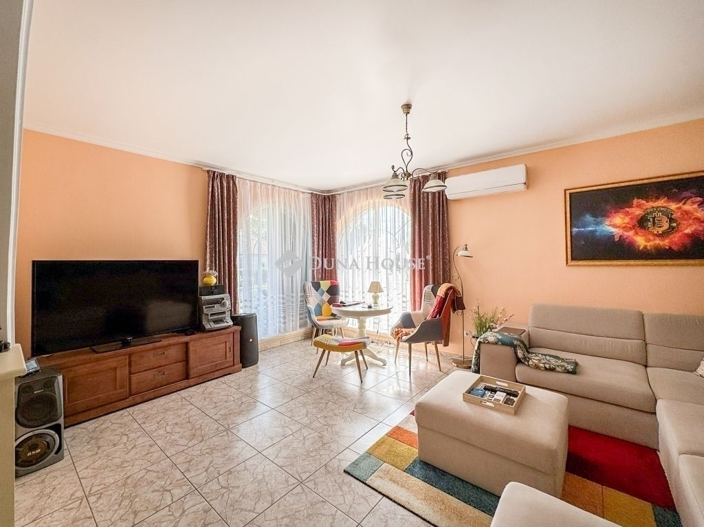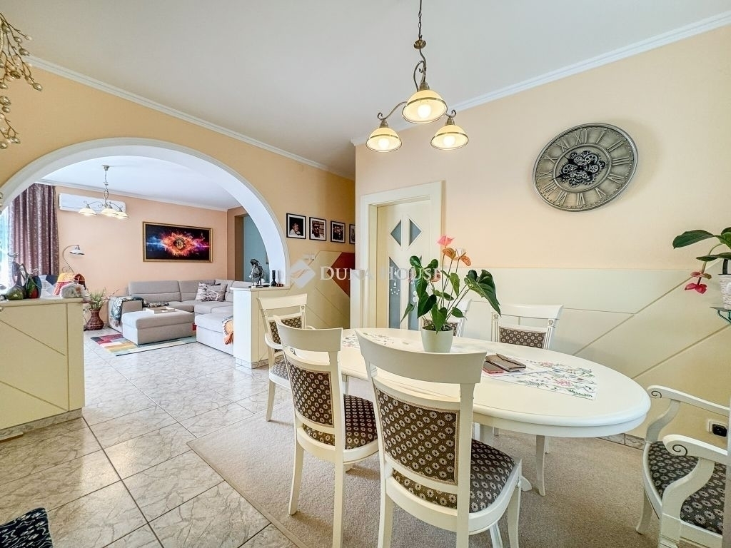 Győrszentivánban nagyon jó elosztású családi ház eladó, csodaszép parkosított kerttel és úszótóval, igazi különlegesség!Közel 1300 m²-es telken, 160 m²-es, jól megtervezett családi ház várja új tulajdonosát. Az ingatlan modern megoldásokkal és számos extrával felszerelt, a földszint 3 éve teljes felújításon esett át:160 m² lakótér + 30 m² fedett terasz, garázs és 80 m² pinceszint, ami akár hobbyszobává is alakíthatóFúrt kút mely a kerti automata öntözőrendszer és az úszótó vízszükségletét is fedezi50 m3-es fűtött úszótó lágyított és UV fertőtlenített vízzel, valamint kis dísztó színes halakkalParkosított, gondozott díszkert különleges növényekkel és gyümölcsökkel (cseresznye, alma, vilmoskörte, nektarin, mandula, málna), a mindig tökéletes gyepért automata Husqvarna fűnyíró felel, a pergolán bő termésű kivi és mini kivi - már csak élvezni kell a nyugalmat és az aktív kikapcsolódás lehetőségeit18 napelem a tetőn áramszámla nélküli élet, A+ energetikai besorolás4 hálószoba - mindenkinek privát tér2 fürdőszoba (kád és zuhanyzó)Padlófűtés a földszinten, Saunier Duval kondenzációs gázkazán, hűtő-fűtő klímák a nappaliban és még 2 szobábanEgyedileg készíttetett, gyönyörű és praktikus konyhabútor a főzés szerelmeseinek, mely 3 éve került beépítésre az akkor legmodernebb konyhai gépekkel (például pirolízises sütő)Redőnyök, szúnyoghálók mindenholModern, nagyméretű Velux tetőtéri ablakokA kertben 2 kerti tárolóZen életérzésű kert, modern ház, egy igazi családi fészek!Győr belvárosa csak 11 perc autóval, de sétatávolságban minden lényeges elérhető: iskola, óvóda, különböző szolgáltatások, élelmiszer boltok, orvosi rendelő, gyógyszertár, stb.Hívjon a hét bármely napján és nézzük meg együtt új otthonát!