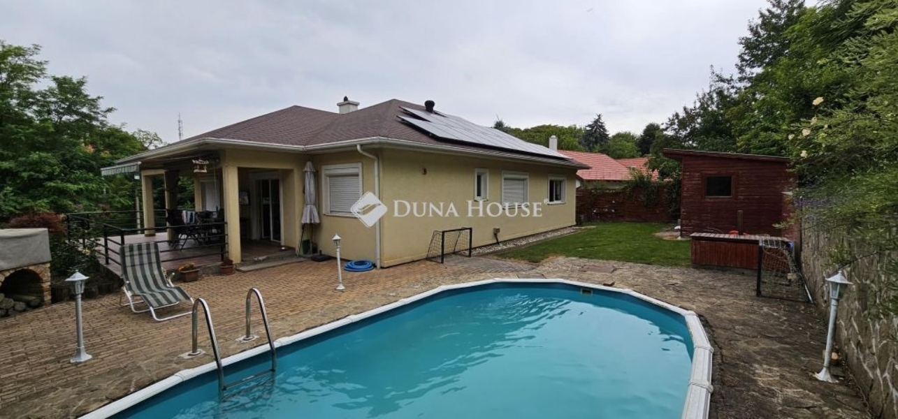 Győrújbarát csendes, kedvelt részén eladó egy 117 m² hasznos alapterületű, könnyűszerkezetes, szigetelt, 2001-ben épült családi ház, hatalmas 1490 m²-es telekkel, garázzsal, terasszal és medencével.