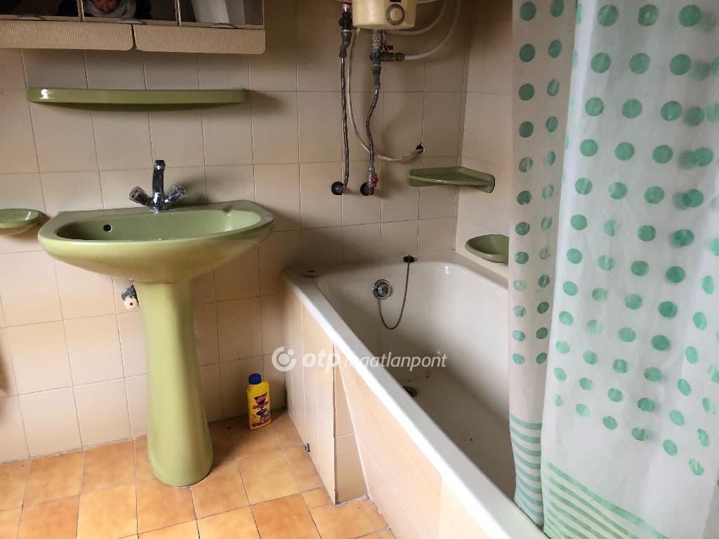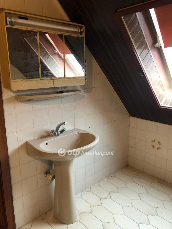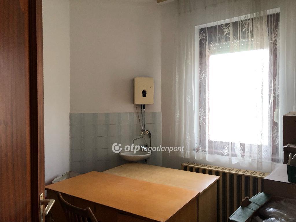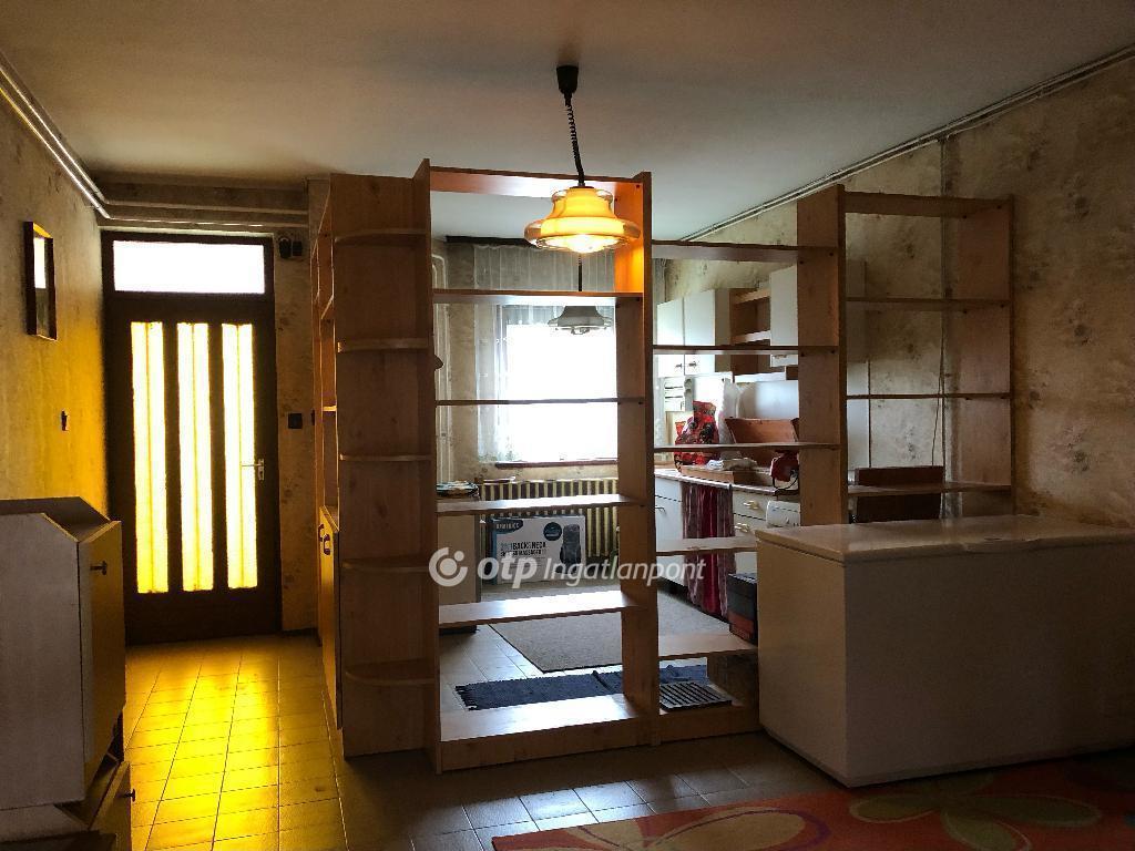 A földszinti közlekedőből minden helyiség megközelíthető. Balra található a fürdőszoba, ahol tusoló és kád is helyet kapott, mellette egy különálló WC. Jobb oldalon pedig a kamra, illetve a konyha található. Szemben pedig egy igencsak nagyméretű, napfényes nappali, amely 38 nm, így ebédlő gyanánt is szolgálhat. Itt a meleget, akár a rendelkezésre álló cserépkályha is biztosíthatja.