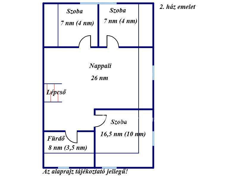 Az emeleten egy 26 nm-es nappaliba érkezünk, melyből 2 félszoba, 1 szoba, illetve egy káddal ellátott fürdőszoba nyílik. Az emeleten hűtő-fűtő klíma is megtalálható.