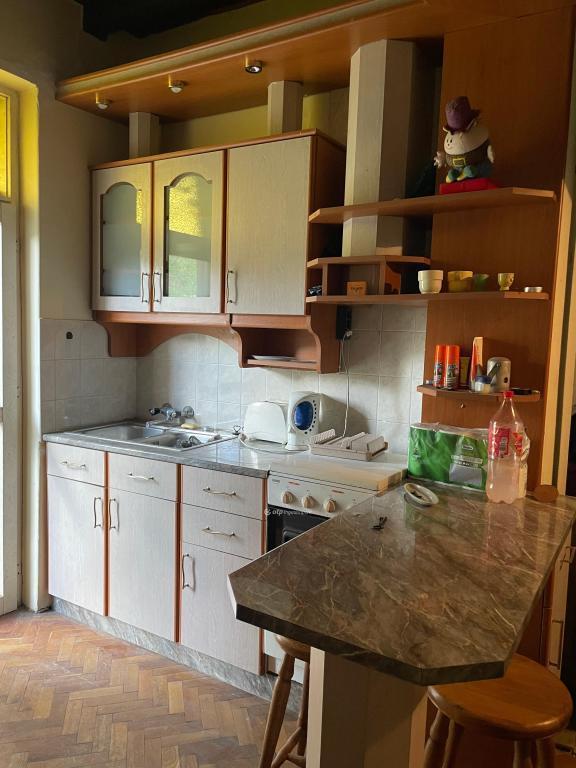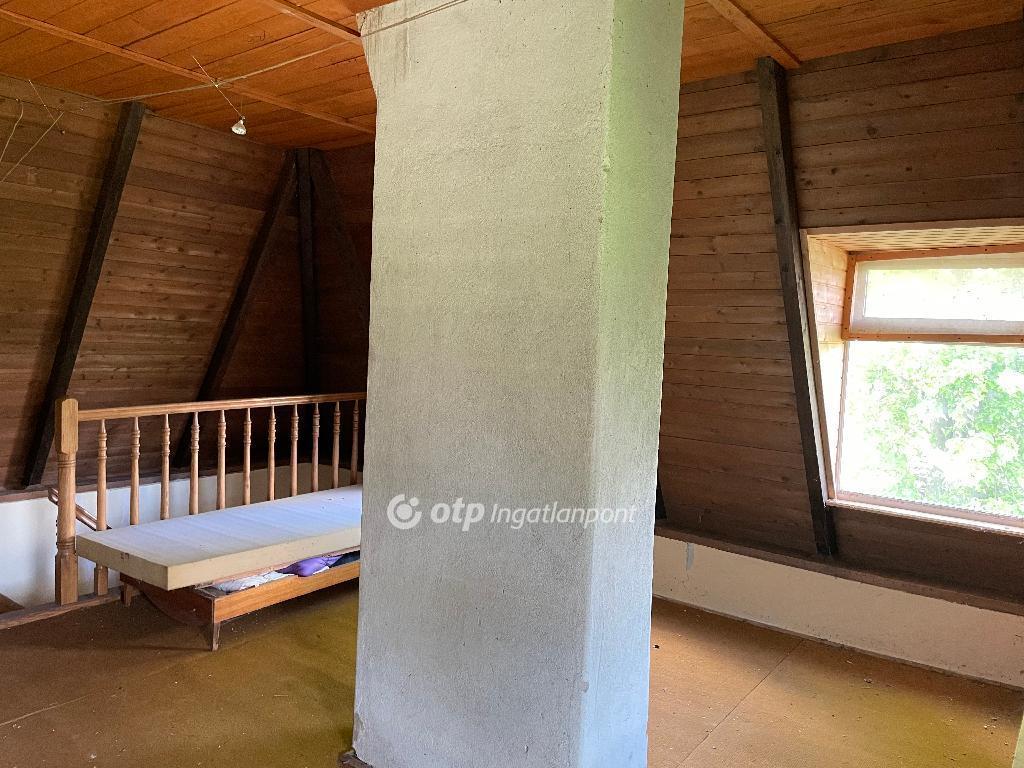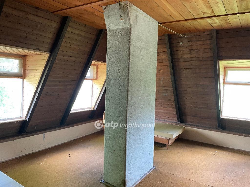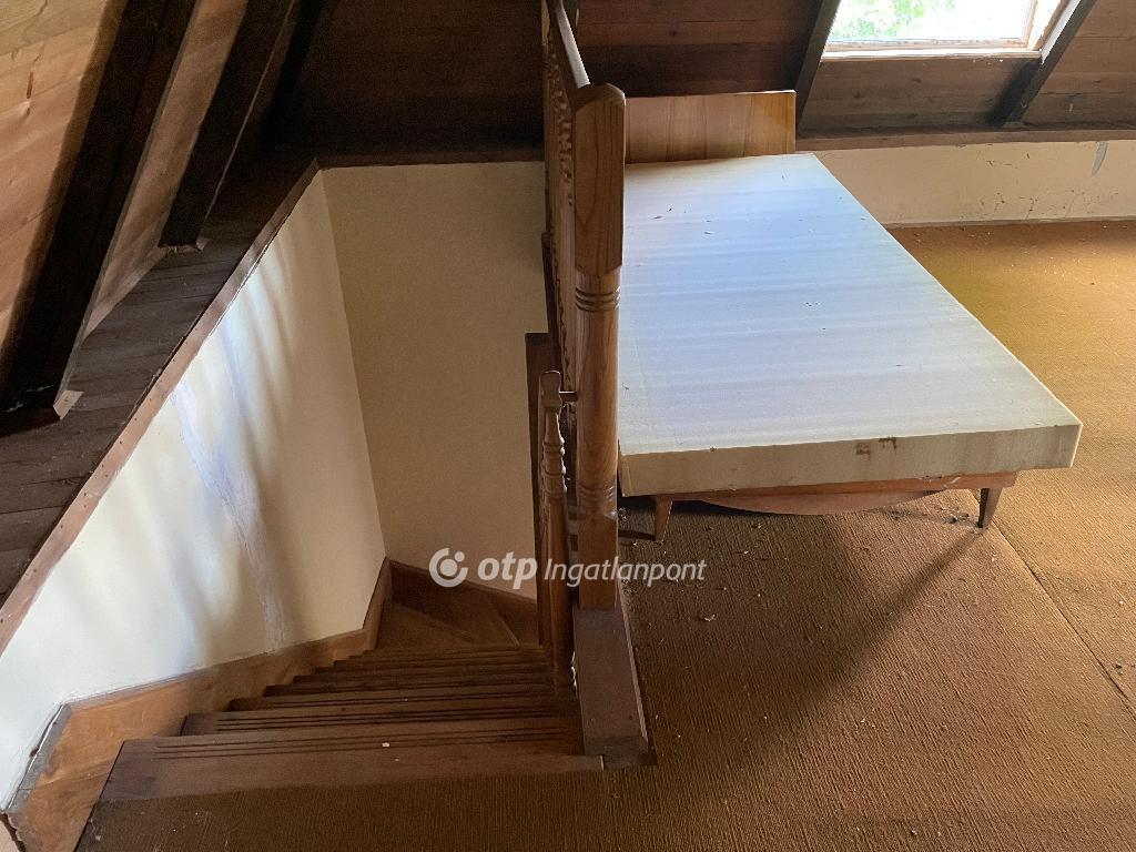 Eladó a Gyula városához tartozó Városerdő üdülőterületen egy 479 m2-es telken fekvő, tetőtér beépítésű ház, melynek összes alapterülete 65 m2. A ház téglából épült, földszintjén egy 30 m2-es, amerikai konyhás nappali - hatalmas ablakokkal - és a fürdőszoba található, ahonnan a teraszra is kijuthatunk. A nappaliból egy nagyon szép, masszív falépcső visz fel az emeletre. A tetőtér egy tágas, egy légterű szoba, melynek teljes területe 35 m2, de az 1,9 m feletti belmagasságú terület is 18 m2, melynek tágas hatását a tetősíkból kiugró ablakok is növelik. Innen egy 3 m2-es loggia is nyílik, melyről a szomszédos erdőre látunk. A ház elektromos- és vízvezetékét a jelenlegi tulajdonos kicseréltette, valamint a tetőtéri ablakokat is hőszigeteltre cseréltette. A ház fűtését egy nagyon jó minőségű kályha biztosítja. Mind a földszinten, mind a tetőtérben nagyon szép a mennyezeti faburkolat. A falakon belül vannak javítanivalók, pereg a festék, és néhol vakolat javításra is szükség van, de némi ráfordítással egy csodálatos hangulatú, tágas nyaralót, de akár állandó lakhatásra alkalmas házat is tudhatunk magunkénak. Városerdő közúton 8 km-re található Gyulától, közvetlenül a Fekete-Körös mellett. Jó minőségű kerékpárúton is, de vonattal is megközelíthető. Már most is nagyon sok család állandó jelleggel lakik ezen a hangulatos, csupa zöld, madárcsicsergős üdülőterületen. Amennyiben felkeltette érdeklődését ez a gyöngyszem, hívjon bizalommal, és nézzük meg együtt!