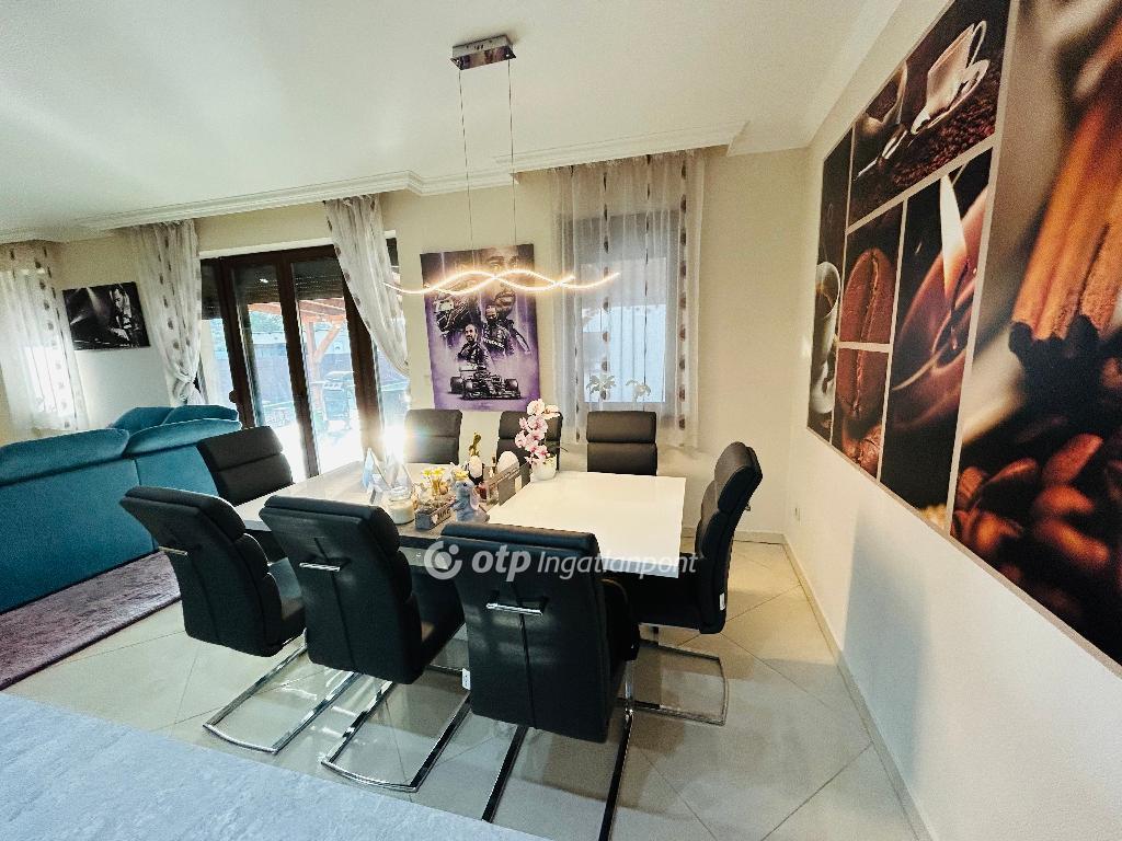 A ház elrendezését tekintve áll: 43,5 nm-es konyha- étkező - nappali közösségi tér, hátsó kertre, teraszra nyílik, továbbá 3 külön nyíló szoba, 2 fürdőszoba, WC, gardrób szoba, közlekedő, kamra, előszoba beépített gardróbbal,