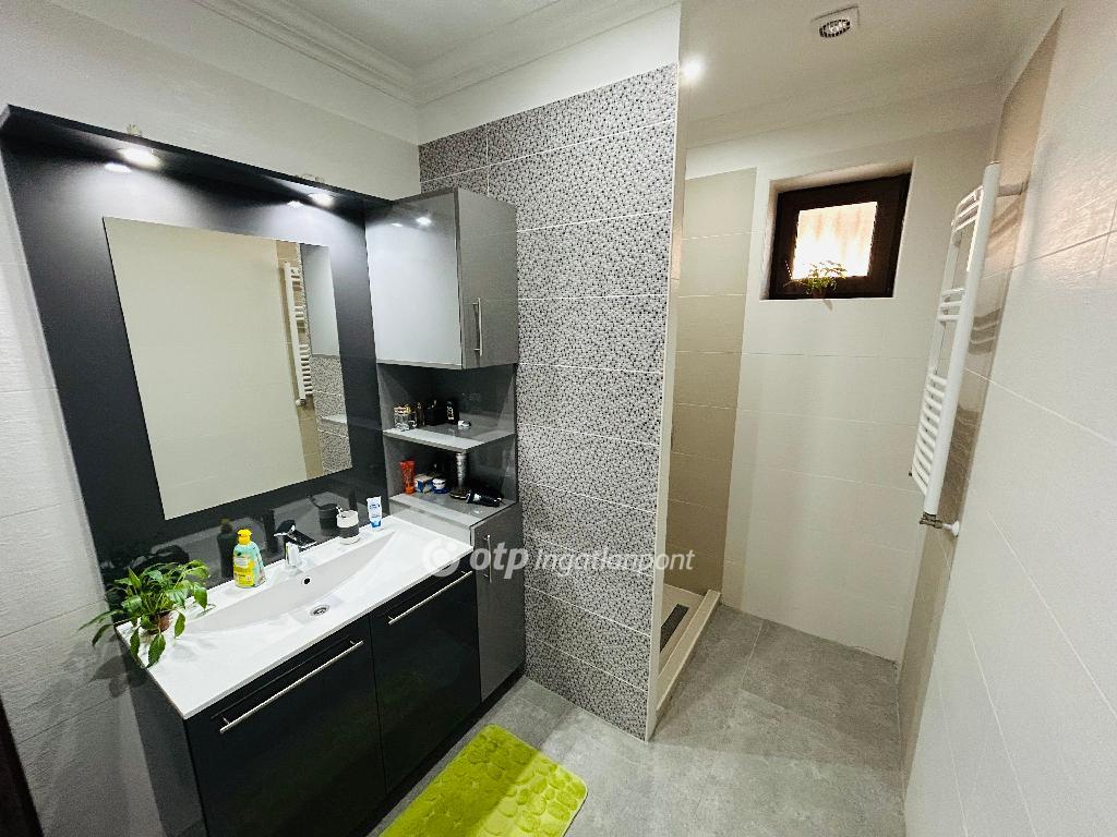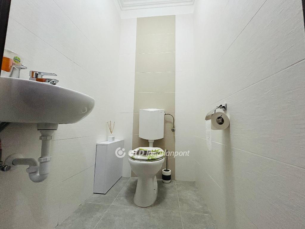 - Szobái laminált parkettával, míg a többi helyiség nagy méretű járólappal burkolt.