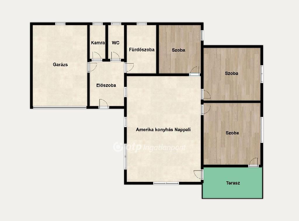 Szobák száma: 3 szoba + amerikai konyhás nappali