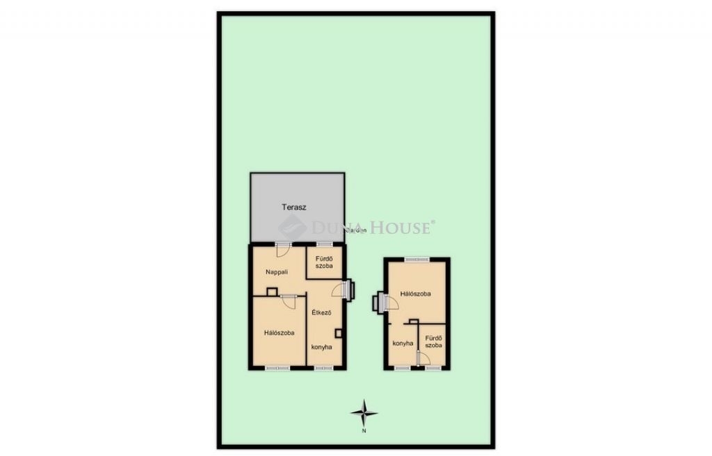 Az ingatlan két különálló épületből áll (20 m² és 40 m²), így ideális választás lehet családoknak, többgenerációs együttélésre vagy befektetési célra is.