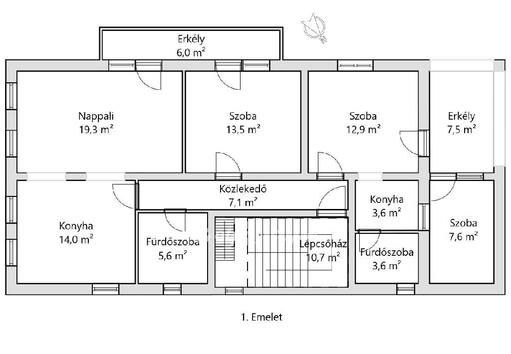 - Emelet: 2 külön lakrész, egyik amerikai konyhás nappalival, másik gyermekes családoknak ideális, az Aquaparkra néző terasszal