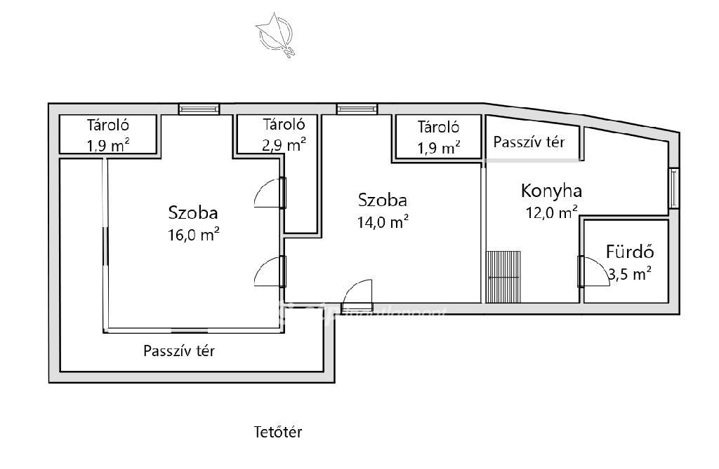 - Tetőtér (2010-ben beépítve): modern apartman nappalival, hálóval, konyhasarokkal és fürdővel