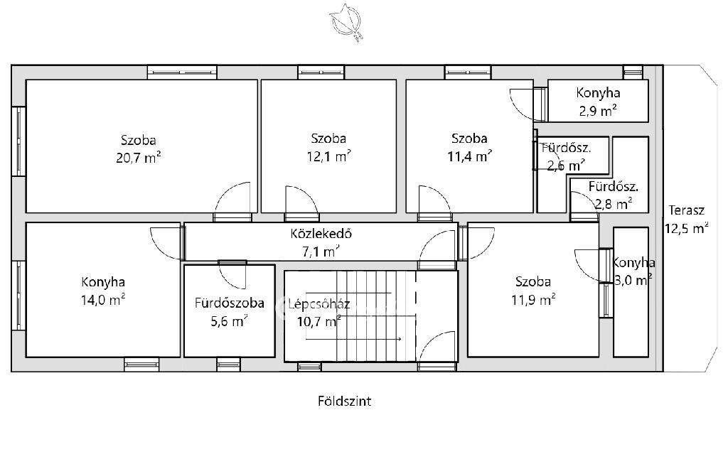 - Földszint: 1 nagyobb, kétszobás lakrész + 2 egyszobás apartman (saját fürdő, konyhafülke, közös terasz)