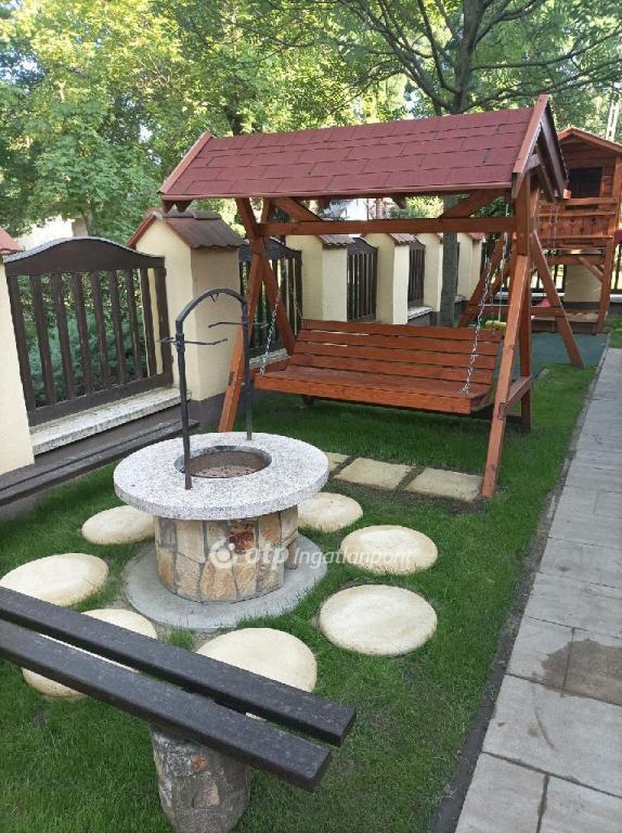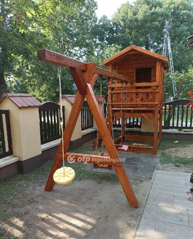Az udvarban 5-6 autó kényelmes parkolása biztosított. A parkosított telken fa játszótér és épített grillterasz áll a vendégek rendelkezésére.
