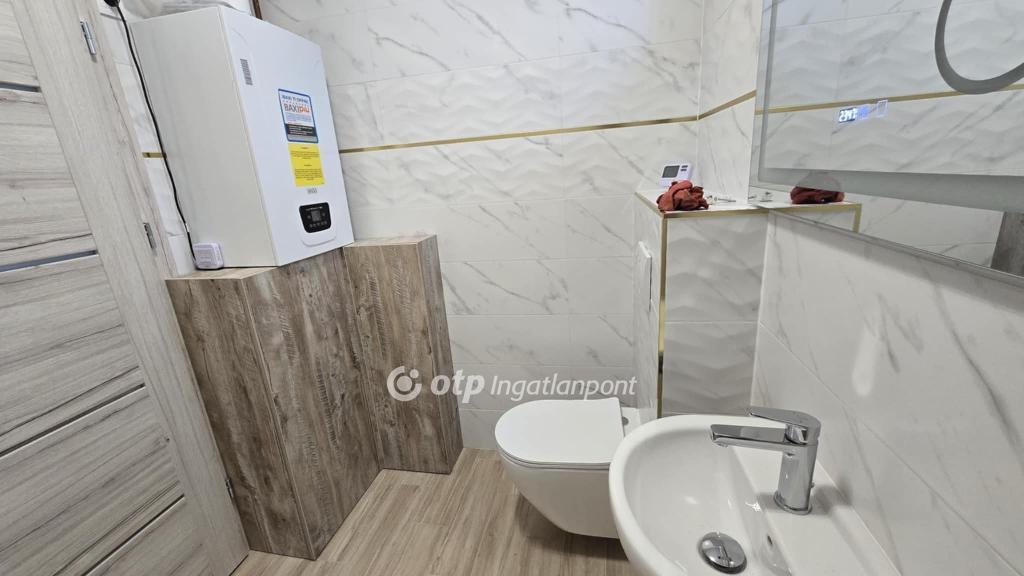 -az otthon melegét modern gázkazán szolgáltatja minden helyiségben padlófűtés lett kialakítva , illetve az amerikai konyhás nappaliban inverteres klíma lett telepítve