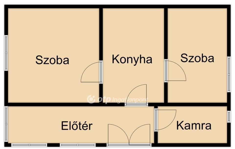 -Helyiségei: 2 szoba, konyha, előszoba, kamra