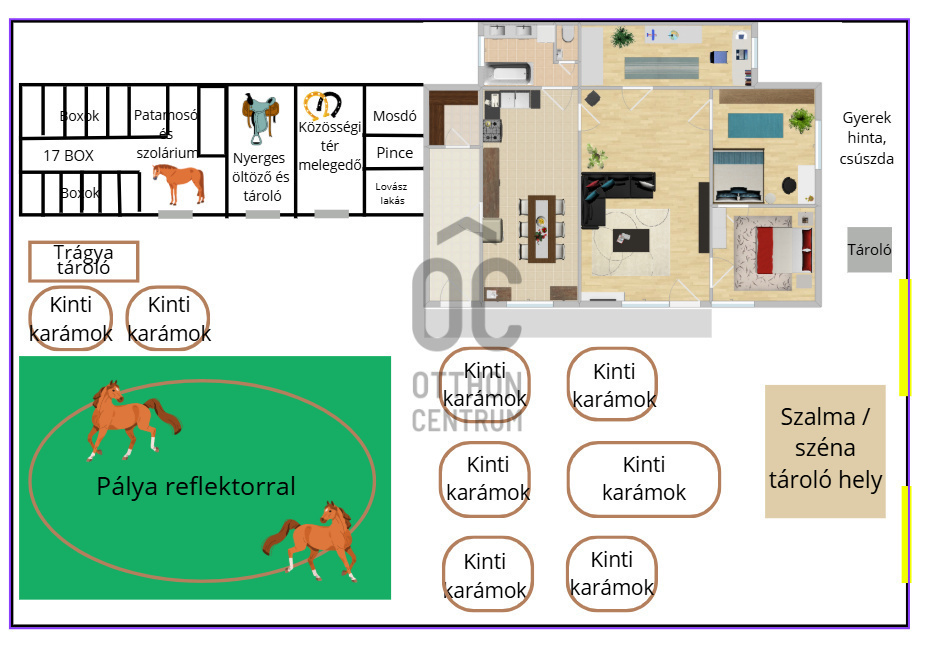 Ez az ingatlan ideális választás lehet azoknak, akik saját lovardát szeretnének működtetni, miközben kényelmes otthonban élnek – mindezt egy helyen, kompromisszumok nélkül.