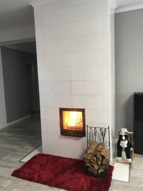 Gyönyörű cserépkályha a földszinti nappaliban, amely nemcsak látványelem, hanem kellemes meleget is ad