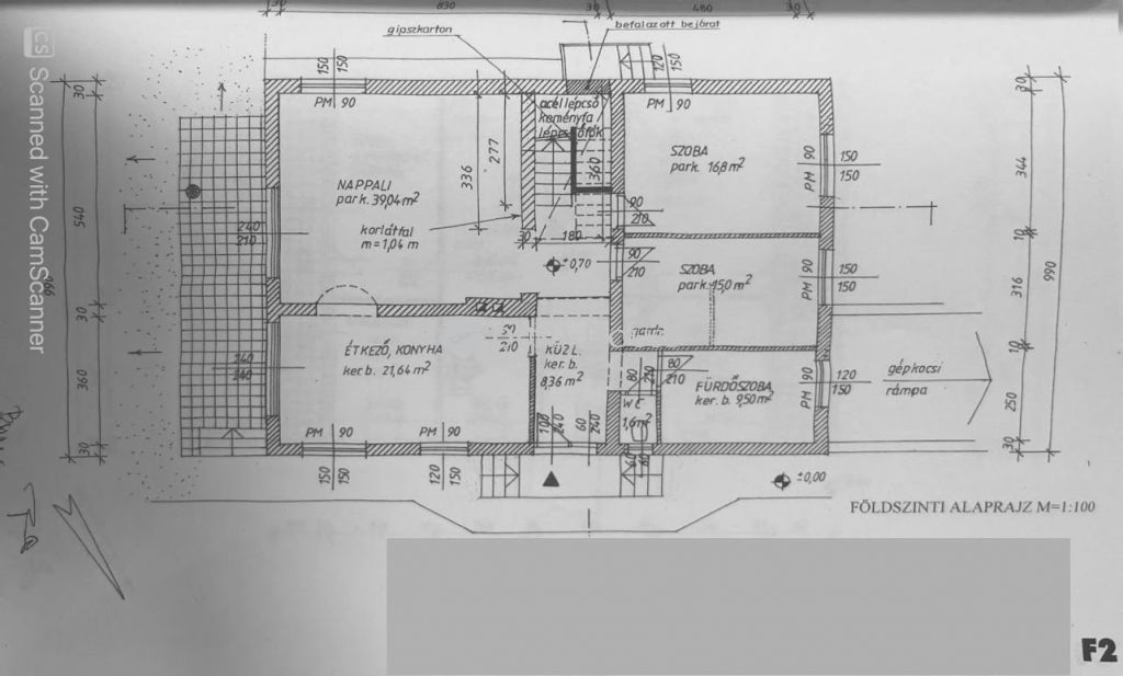 Földszint: 2 külön nyíló szoba, tágas nappali+ amerikai konyha, fürdőszoba, WC