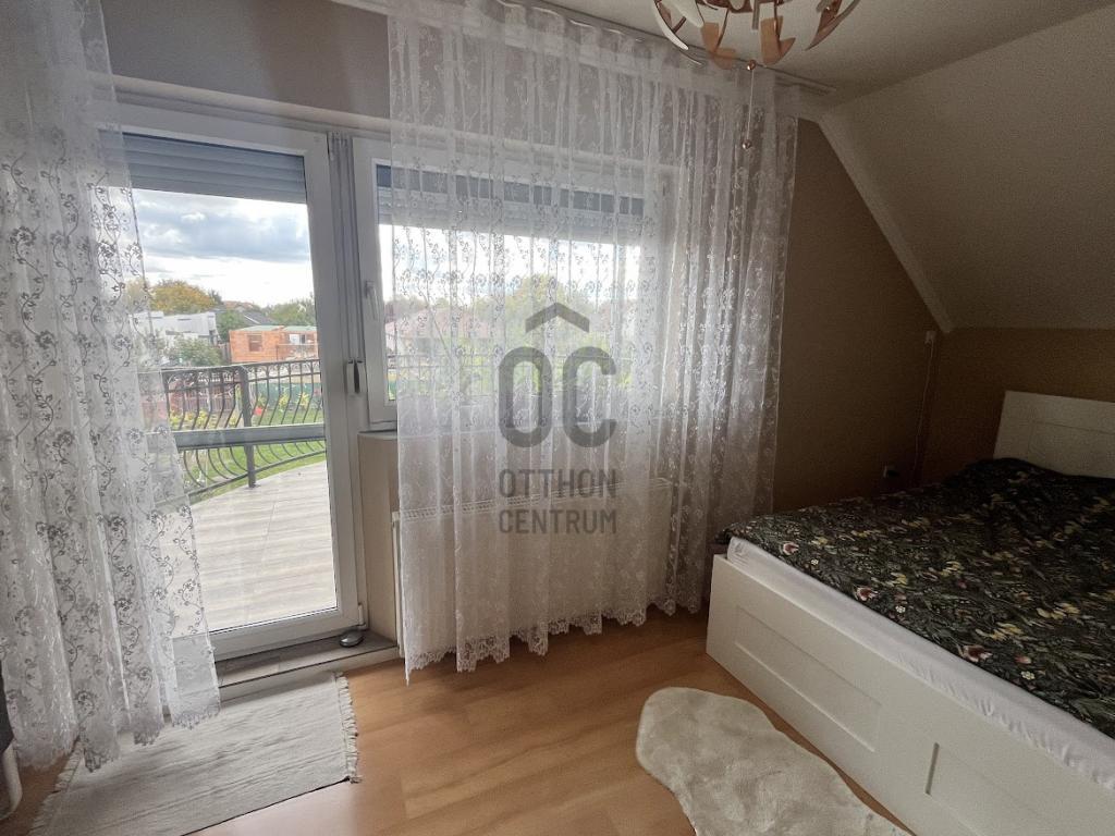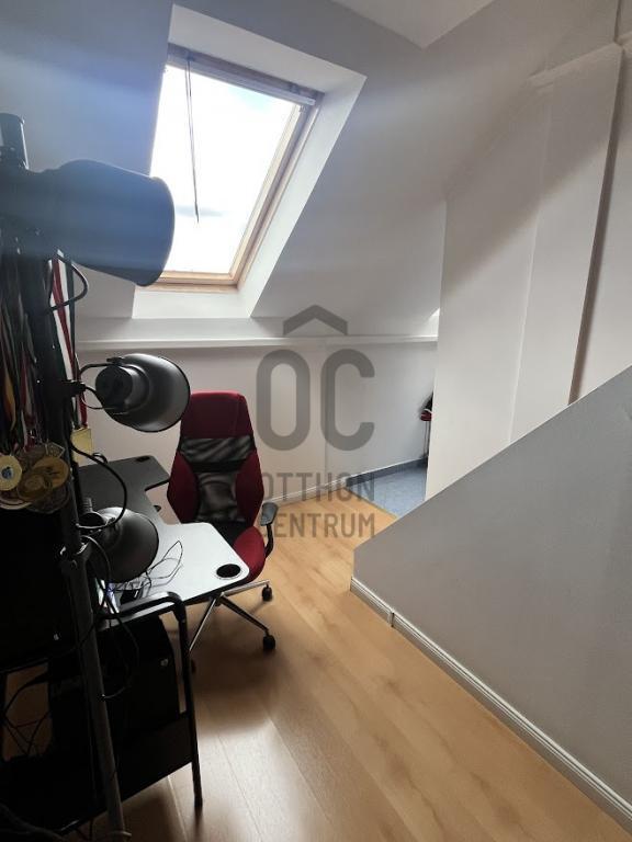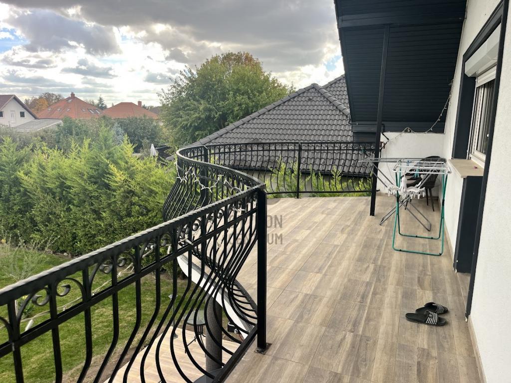 Az emelet világos és praktikus: három hálószoba, gardrób, két fürdőszoba, két terasz és egy kellemes pihenősarok segíti a teljes komfortot. A 10 cm homlokzati szigetelés, a klíma és a modern nyílászárók gondoskodnak az energiahatékonyságról és a kényelmes mindennapokról.