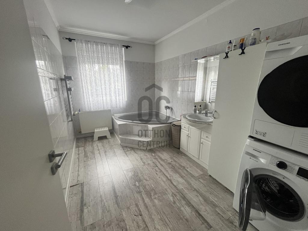 A körbejárható ingatlan szuterénnel (garázs és tárolók) és beépített tetőtérrel rendelkezik, így a tágas terek minden családtag számára külön életteret biztosítanak. A nappalit a hangulatos cserépkályha teszi otthonossá, a konyhából és a nappaliból pedig a nagy hátsó teraszra léphetünk, ahol fúrt kútról működő automata öntözőrendszerrel ellátott kert és pihenőkert vár.