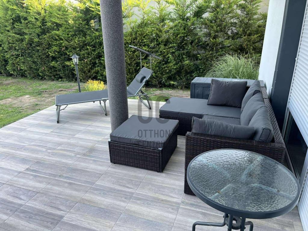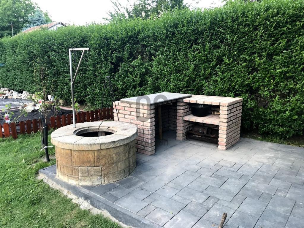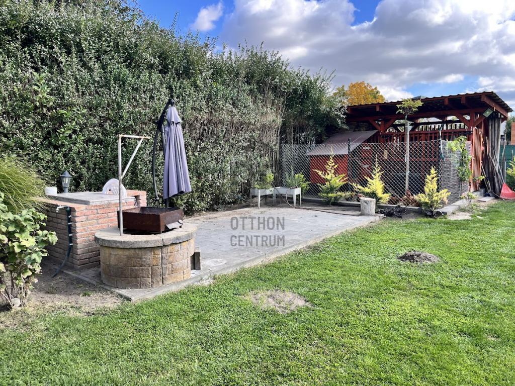 A kert külön említést érdemel: parkosított udvar, sütögető, fásszín, háztáji tároló és teljes intimitást biztosító növénysáv – ide öröm hazatérni.