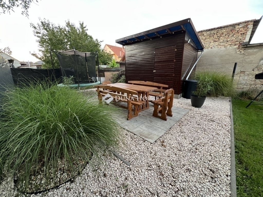 A szép, gondozott kert ideális helyszín a pihenéshez, kerti partikhoz . A zárt udvar elektromos kapuval ellátott, és autóbeálló, valamint különálló kinti tároló is tartozik az ingatlanhoz.