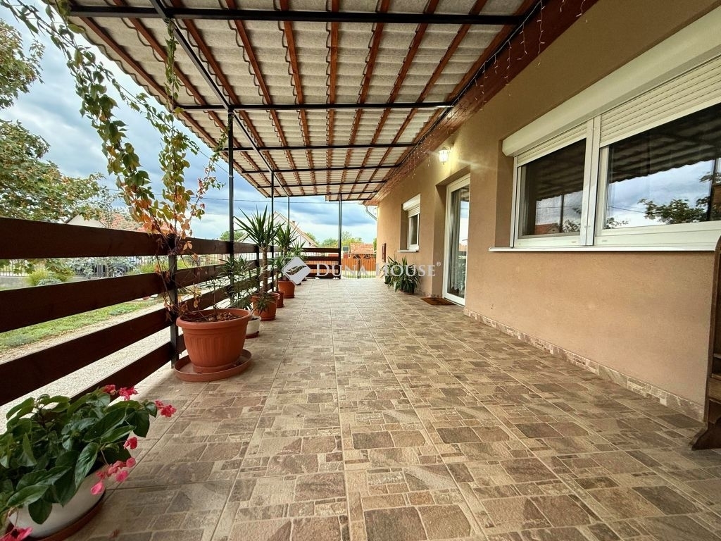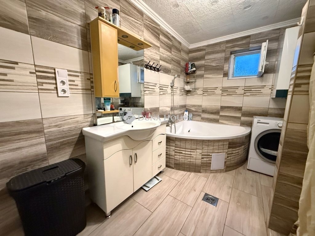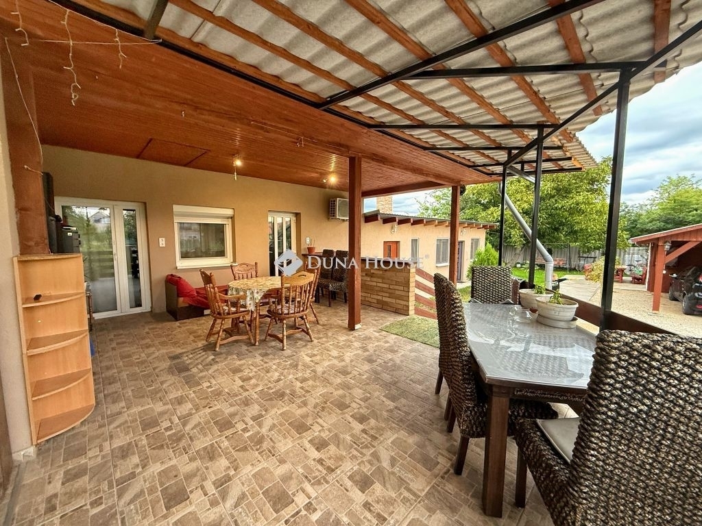 Hantoson teljesen felújított, kétgenerációs lehetőséget is kínáló családi ház eladó.Hantos központi részén eladó egy 90%-ban tégla építésű, igényesen felújított családi ház, amely azonnal költözhető állapotban várja új tulajdonosát. Az ingatlan különlegessége, hogy kialakításának és melléképületeinek köszönhetően akár két generáció együttélésére is alkalmas.A házban többféle fűtési lehetőség is biztosított: vegyes tüzelésű kazán, gázbojler, valamint a fürdőszobában található hőtárolós kazán gondoskodik a meleg vízről és a komfortérzetről. A konyha-nappaliban padlófűtés gondoskodik a kellemes hőérzetről, melyet radiátorok és hűtő-fűtő klíma egészít ki. A ház minden szobájában radiátor található, így minden helyiségben biztosított a komfort. A különálló épületben további fűtési megoldások is rendelkezésre állnak: kandalló, radiátor és klíma egyaránt. A szülői hálóhoz saját gardrób tartozik, amelyből közvetlen kijárat nyílik a hangulatos, közel 60 m²-es fedett teraszra. A fürdőszoba modern kialakítású, kád és épített zuhanyzó is helyet kapott benne.Az ingatlan minden részletében a praktikum és a kényelem érvényesül. Távirányítós elektromos kapun keresztül közelíthető meg az udvar, ahol fedett autóbeálló, rendezett kert, fúrt kút, valamint pince is megtalálható. A melléképület külön bejárattal rendelkezik, így önálló lakrésznek is kiválóan alkalmas.A ház masszív tetőszerkezettel rendelkezik, melyet cserepeslemez fedés borít. A melléképületek és a fedett terasz szintén lemeztetőt kaptak. A tetőszerkezet filccel és párazáró fóliával lett kiegészítve, ami hosszú távon biztosítja a megfelelő szigetelést és védelmet. Az elektromos hálózat 3x16 amperes, modern elosztóval felszerelve.Ez a családi ház ritkaság a mai piacon: tágas terek, gondosan karbantartott állapot, többféle fűtési rendszer, és melléképületei révén egyaránt ideális választás családoknak vagy akár két generáció együttélésére. Hibás hirdetés bejelentése