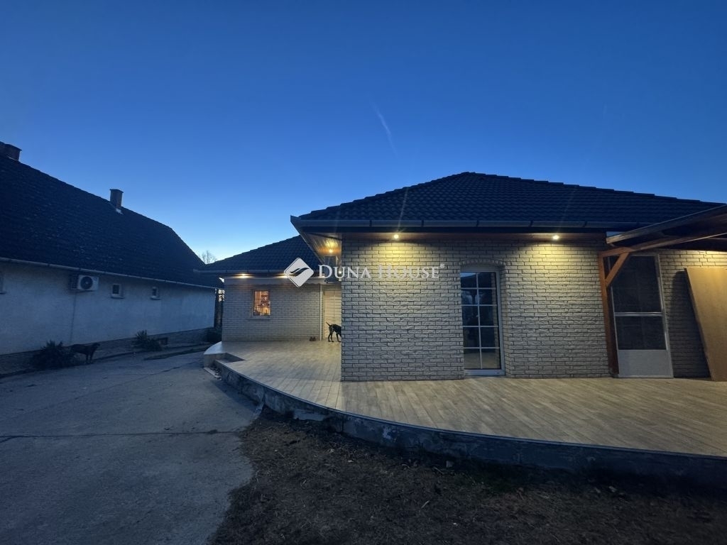 Eladásra kínálunk Himesházán egy kiváló állapotú, tégla építésű családi házat, amely modern komforttal és praktikus elrendezéssel várja új tulajdonosát.Az ingatlan jellemzői:-Alapterület: 160 m²-Hálószobák: 3 db, (külön nyíló)-Fürdőszobák: 2 db-Külön WC: 1 db-Tágas nappali amerikai konyhával ideális közös családi élethez-Fűtésrendszer: gáz-cirkó + vízteres kandalló kombinált rendszer, radiátor és padlófűtés is kiépítve-Napelem (felszereltségként) az energiahatékonyságot is szolgálja-Telekméret: 1 123 m² , fedett és nyitott terasz kertkapcsolattalGarázs: dupla, 67 m²-es (két állásos), amelynek tetején külön bejáratú padlástér került kialakításra extra tárolási vagy akár lakótér funkcióra is alkalmas.Miért érdemes megtekinteni?Ez az ingatlan egyszerre kínál tágas, kényelmes családi otthont és praktikus kiegészítő lehetőségeket. A három hálószoba és két fürdőszoba jól szolgálja a családos életet, míg az amerikai konyha nappali kialakítás könnyed, modern életvitelt tesz lehetővé. A fűtési rendszer és a napelemes megoldás révén energiatudatosan is élhető az ingatlan. A nagyméretű telek és a külön bejáratú padlástérrel rendelkező dupla garázs pedig lehetőséget kínál hobbi, munka, vagy tárolási célokra is.Elhelyezkedés:Himesháza minden megtalálható, ami a mindennapi élethez szükséges: bolt, posta, óvoda, iskola, orvos, fogorvos és bank is helyben elérhető.Kiváló az elhelyezkedése az M6-os autópálya pár perces autóútra található, így Pécs kb. 30 km, Mohács pedig mindössze 10 km távolságra van.Ha felkeltette érdeklődését keressen bizalommal!