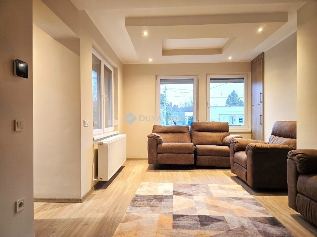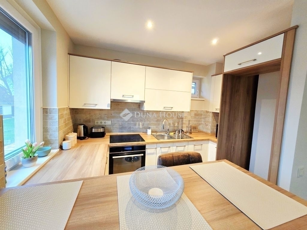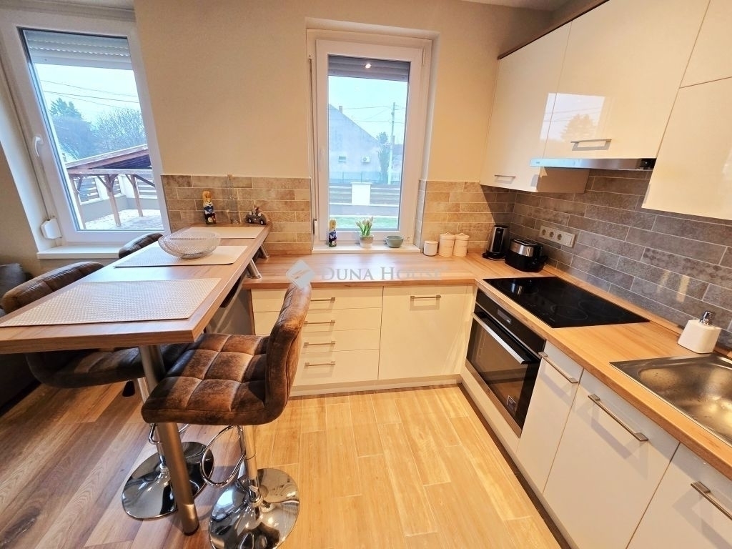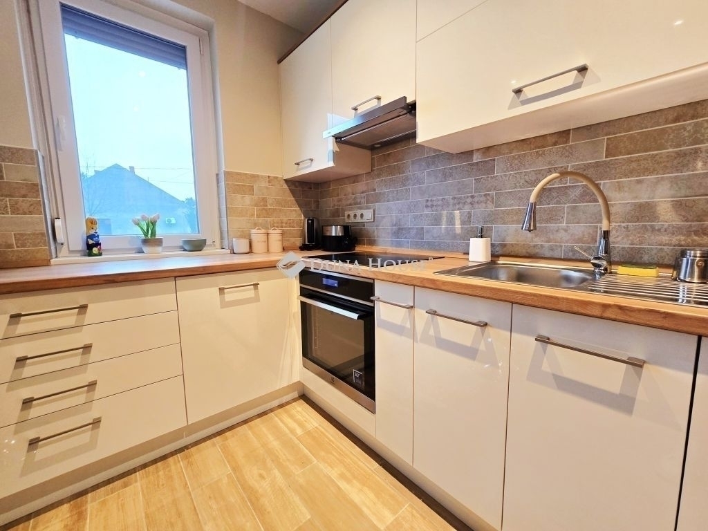 A ház nagyobb lakrésze 2 tágas szoba+ amerikai konyha-nappali, míg a hátsó kisebb lakrész amerikai konyha-nappali+1 tágas szoba elosztású.