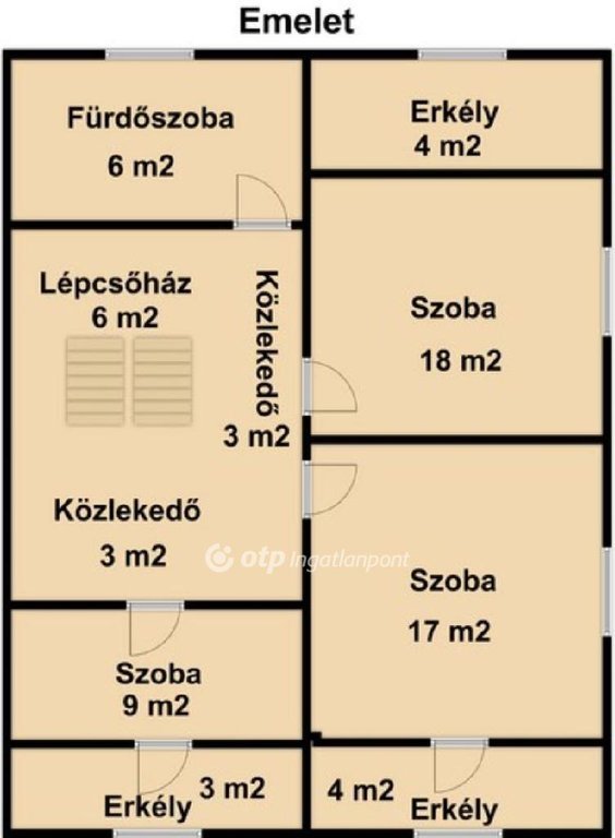 Helyiségek: - nappali, - 4 külön nyíló szoba, - konyha étkezővel, - 2 fürdőszoba, - előszoba és 4 erkély